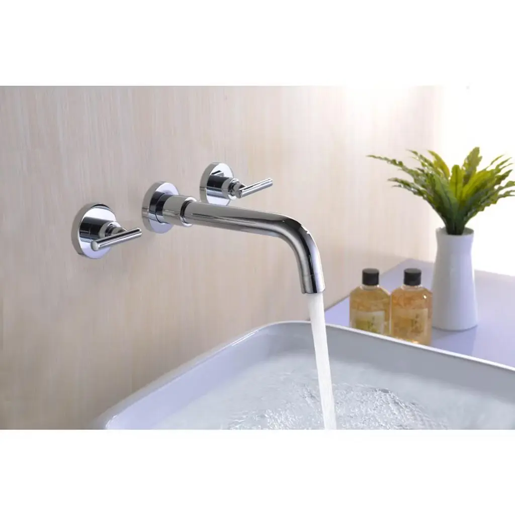 Sumerain Wall Mount Bathroom Sink Faucet Two Handles Lavatory Faucet