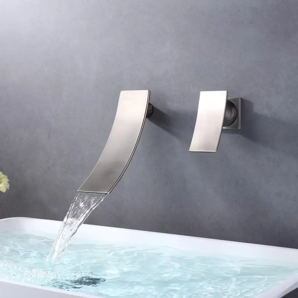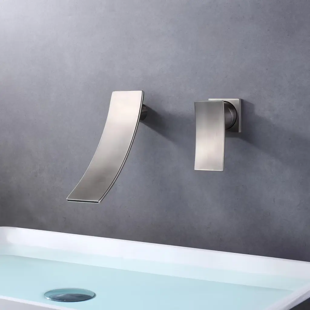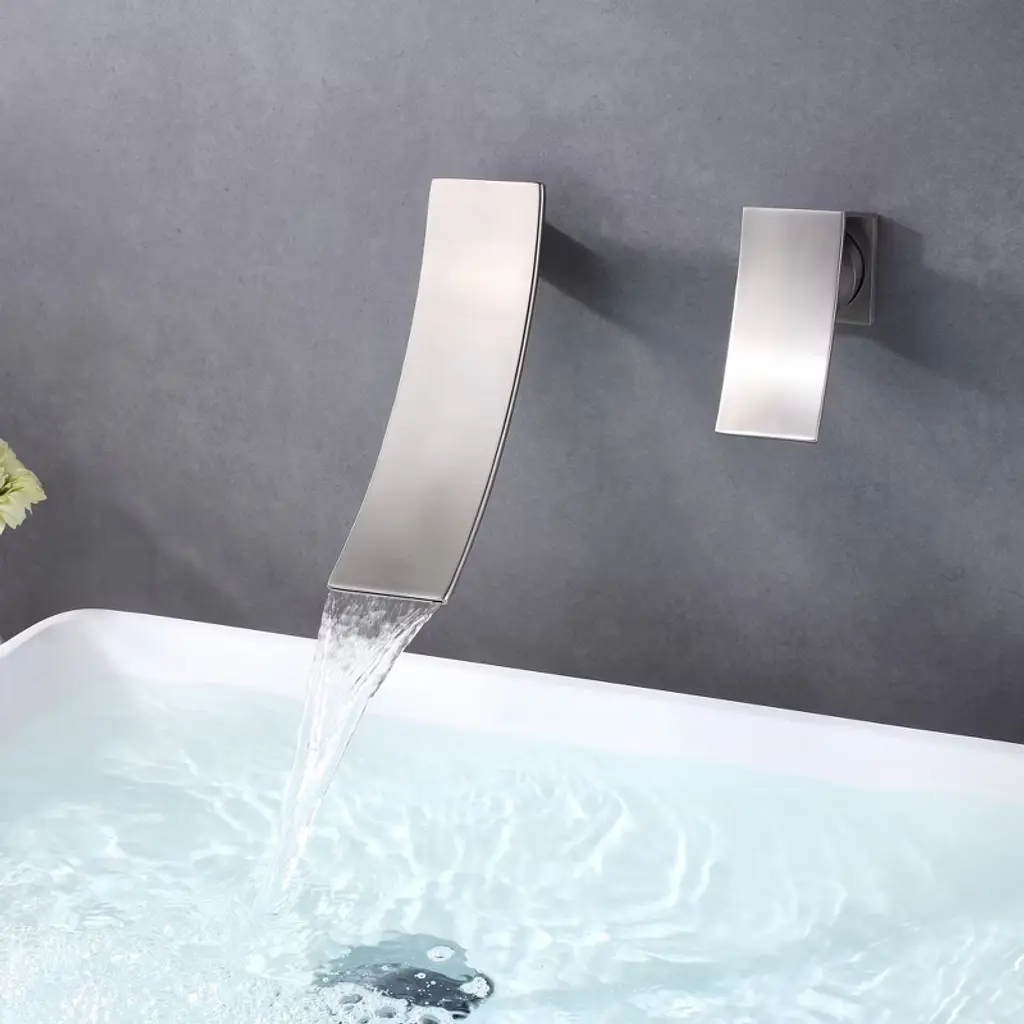 Sumerain Wall Mount Faucet Brushed Nickel,single Handle Bathroom Sink Faucet With Waterfall Spout