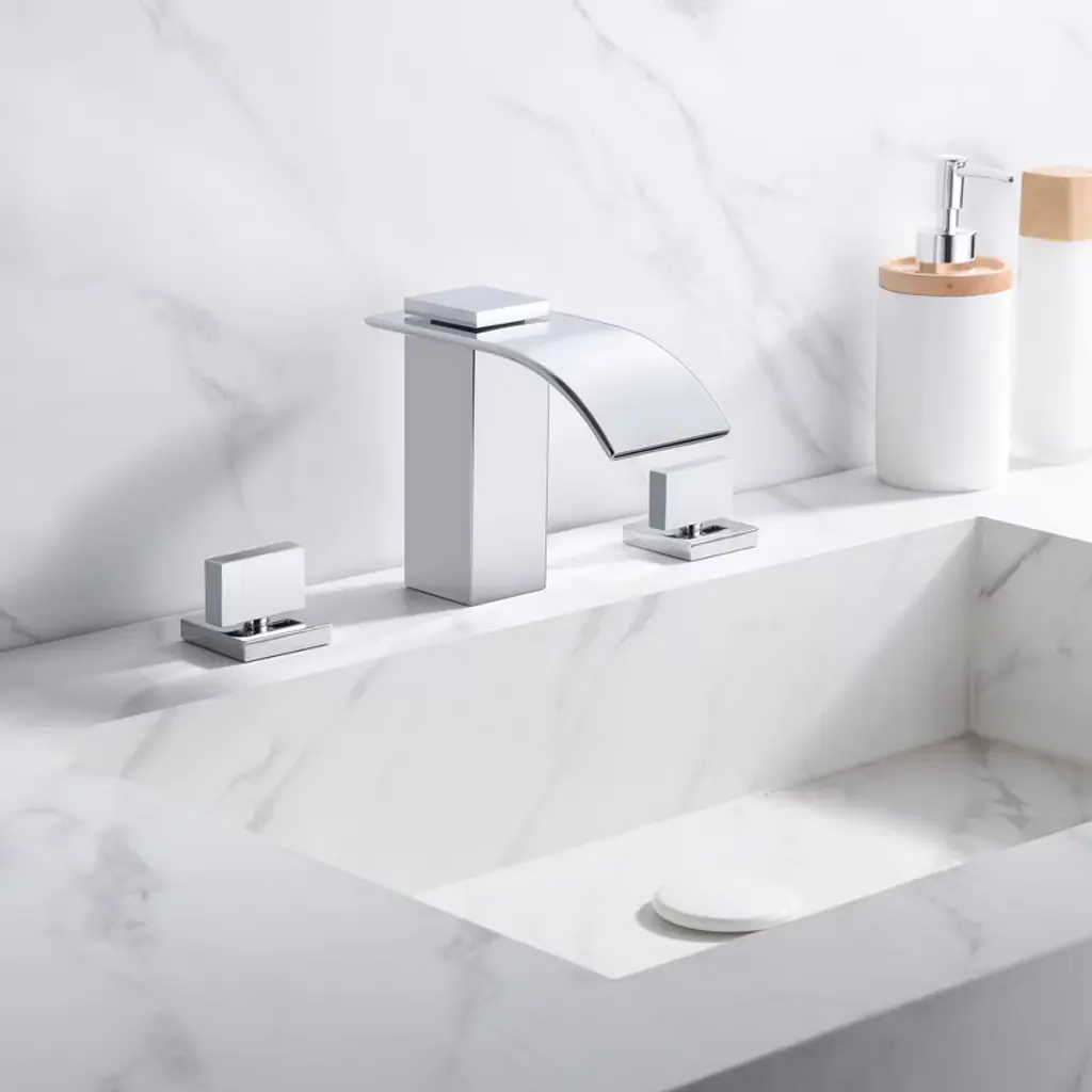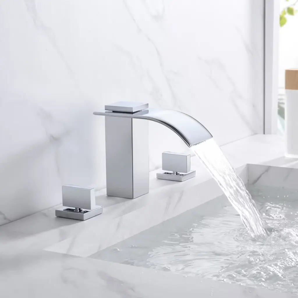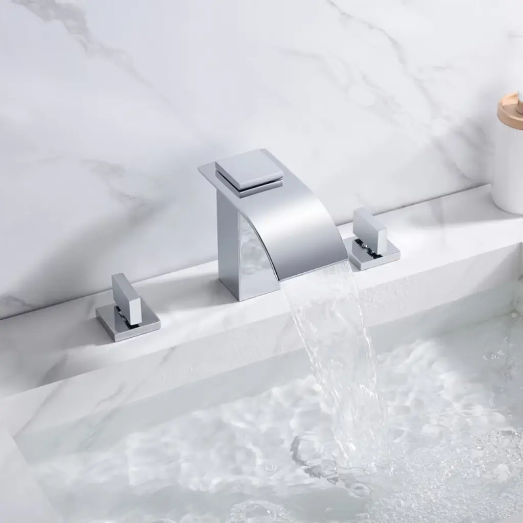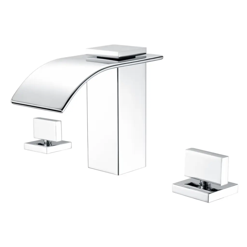 Sumerain Waterfall 8 Inch Widespread Bathroom Sink Faucet 3 Hole 2 Lever Handle, Chrome