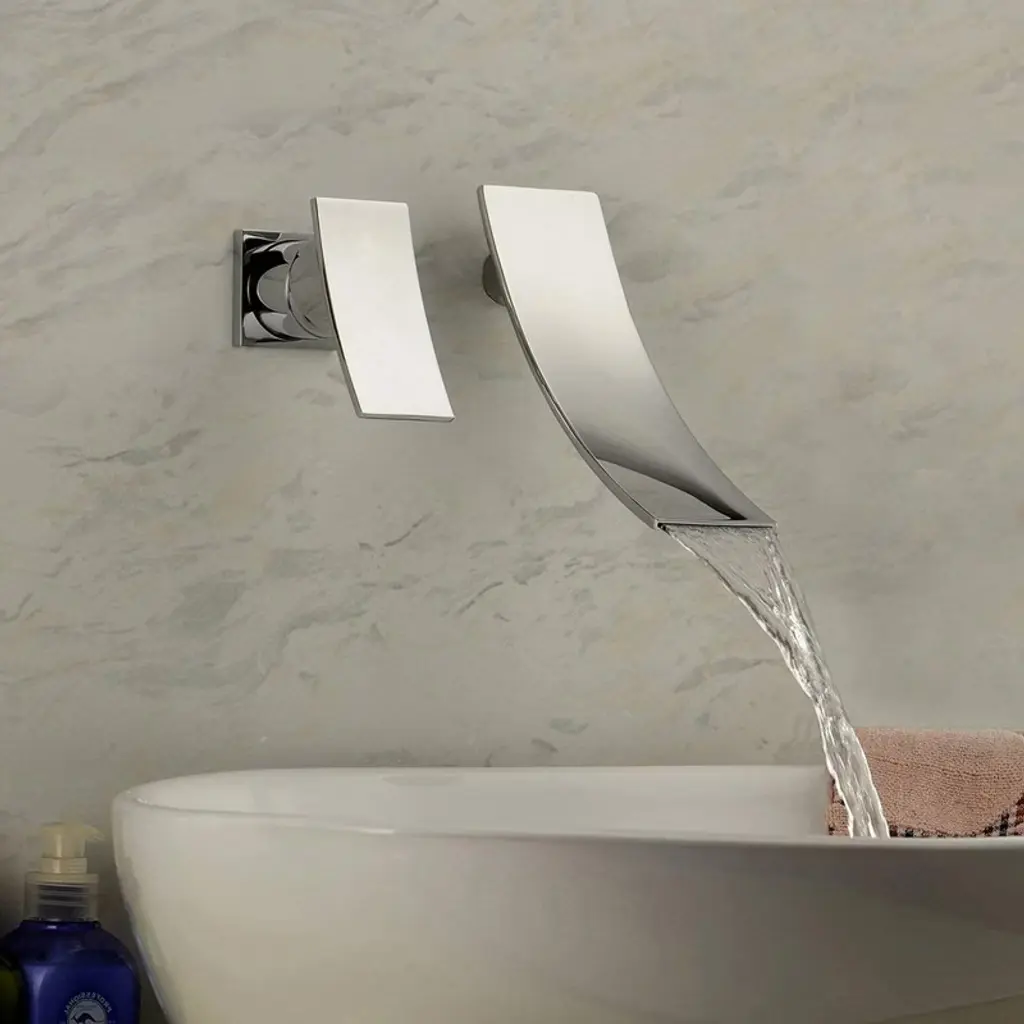 Sumerain Waterfall Bathroom Faucet Wall Mount Faucet Single Left-handed Handle Chrome