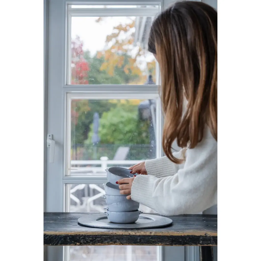 The Svelte bowl by Heirol completes the table settings with its soft appearance. This cute little bowl with handle is ideal for serving spreads, spices, desserts and other small snacks. The Svelte bowl is a part of the Nosse Ceramics for Heirol collection, which celebrates the culture of gathering together. Svelte tableware is characterized by its versatility, simplicity, timelessness, and environment-friendly materials. The shapes and colors of the dishes combine easily together, creating harmonic and cozy table settings for both everyday and festive occasions. The elegant tableware set is made of stoneware and glazed with recycled glass.