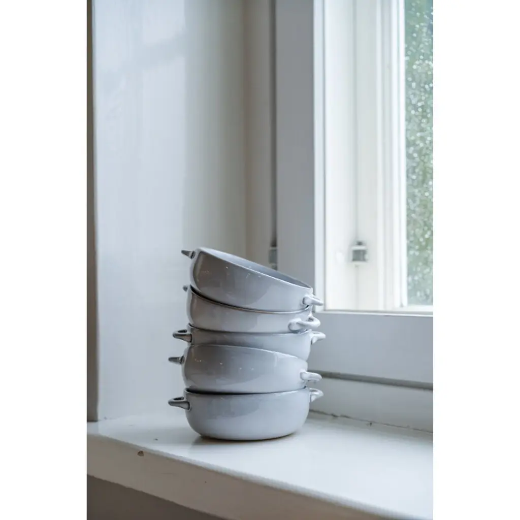 The Svelte bowl by Heirol completes the table settings with its soft appearance. The medium-sized bowl can be used for almost anything: for serving yogurt or porridge at breakfast, soup, pasta or dessert at dinner, or sweets and snacks on a film night. The gray bowl with handles is made of stoneware and glazed with recycled glass. The Svelte bowl is a part of the Nosse Ceramics for Heirol collection, which celebrates the culture of gathering together. Svelte tableware is characterized by its versatility, simplicity, timelessness, and environment-friendly materials. The shapes and colors of the dishes combine easily together, creating harmonic and cozy table settings for both everyday and festive occasions. The elegant tableware set is made of stoneware and glazed with recycled glass.