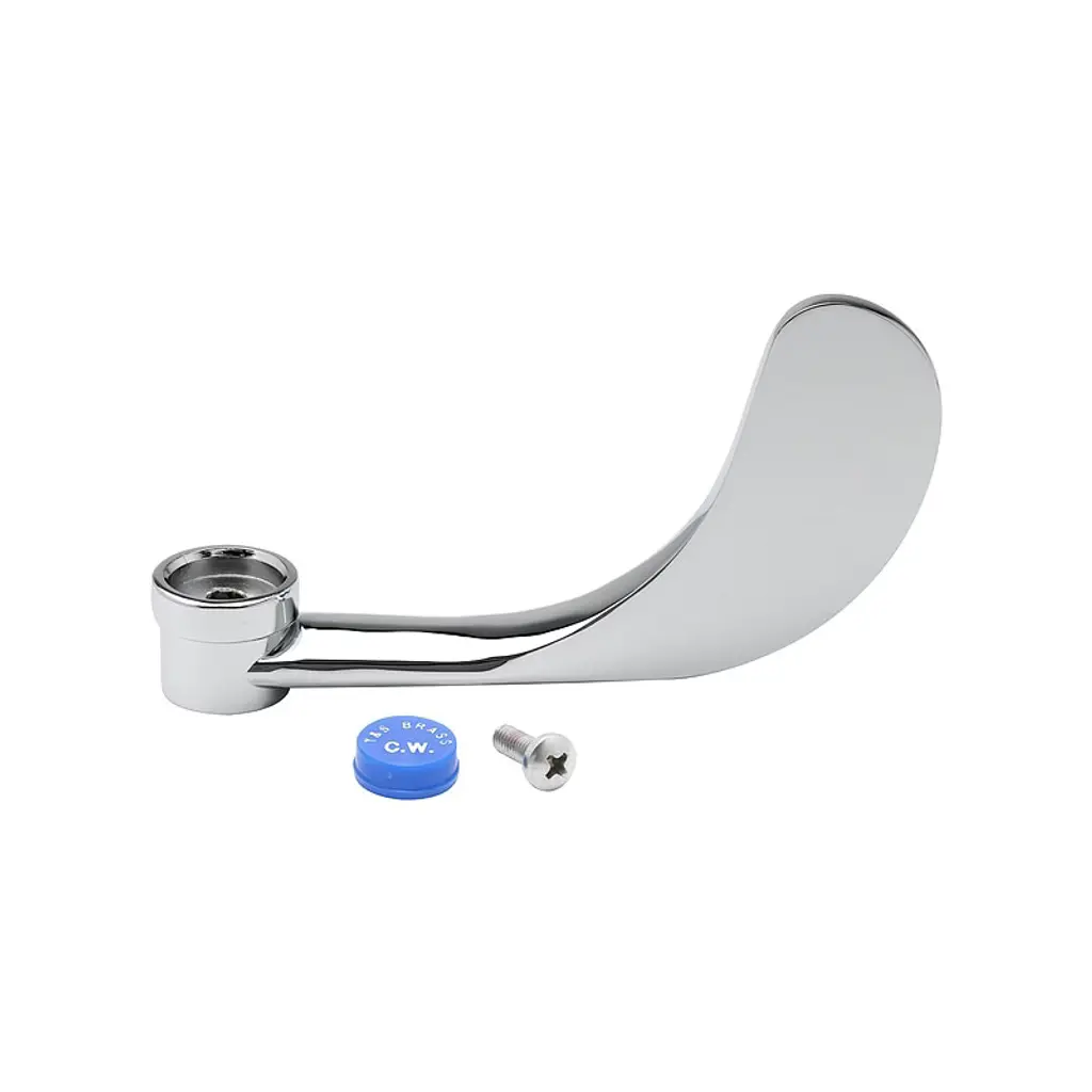 Handle, Fits Brand T&S Brass, For Use With Mfr. Model Number B-2866-05, B-2866-05-F12, B-2866-05-FC15, B-2866-05-LF12, B-2866-05-LF15, B-2866-05-VF05, B-2866-05CR, B-2866-05FC, B-2866-05FC-CR, B-2866-05FC-QT, B-2866-05FC12, B-2867-04, B-2867-04-F05, Faucet Handle Type Wristblade, Finish Chrome, Overall Width 4 in, Use With Water Temp. Hot/Cold, Brass