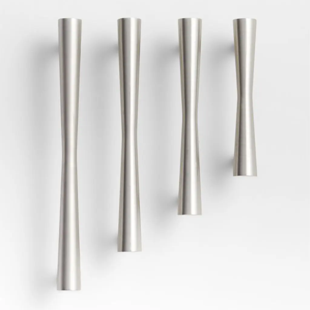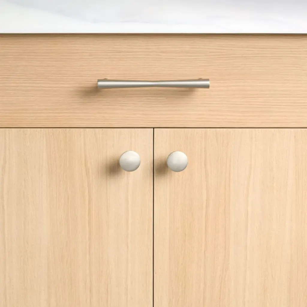 Sometimes it's the small things that pull a room together. That's why we've designed a hardware collection with modern silhouettes, clean lines and a touch of tradition to give your kitchen and bathroom cabinets that perfect finishing touch. Made of brass with a brushed nickel finish, the stylish bar pull gently tapers into a super-subtle hourglass shape. Minimalist cylinder posts elevate the pull for a comfortable handhold. The three-inch pull is easily installed on cabinet doors and dresser drawers with included hardware.