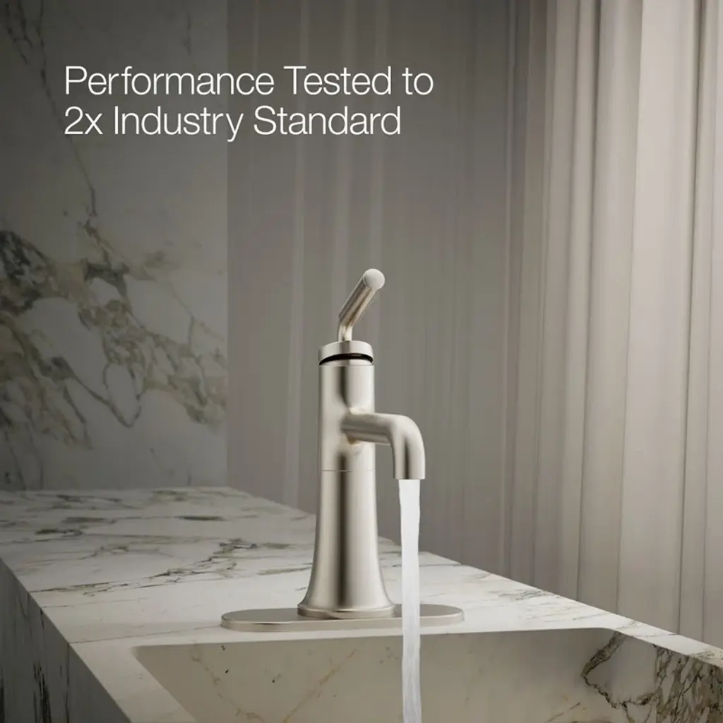With clean lines and a soft teardrop base, the Tone bathroom faucet collection features a fresh take on midcentury modern style. This inviting design, where minimalism meets warmth, makes for a perfect fit in any space. Paired with thoughtful functionality, the Tone collection is a dynamic beauty.