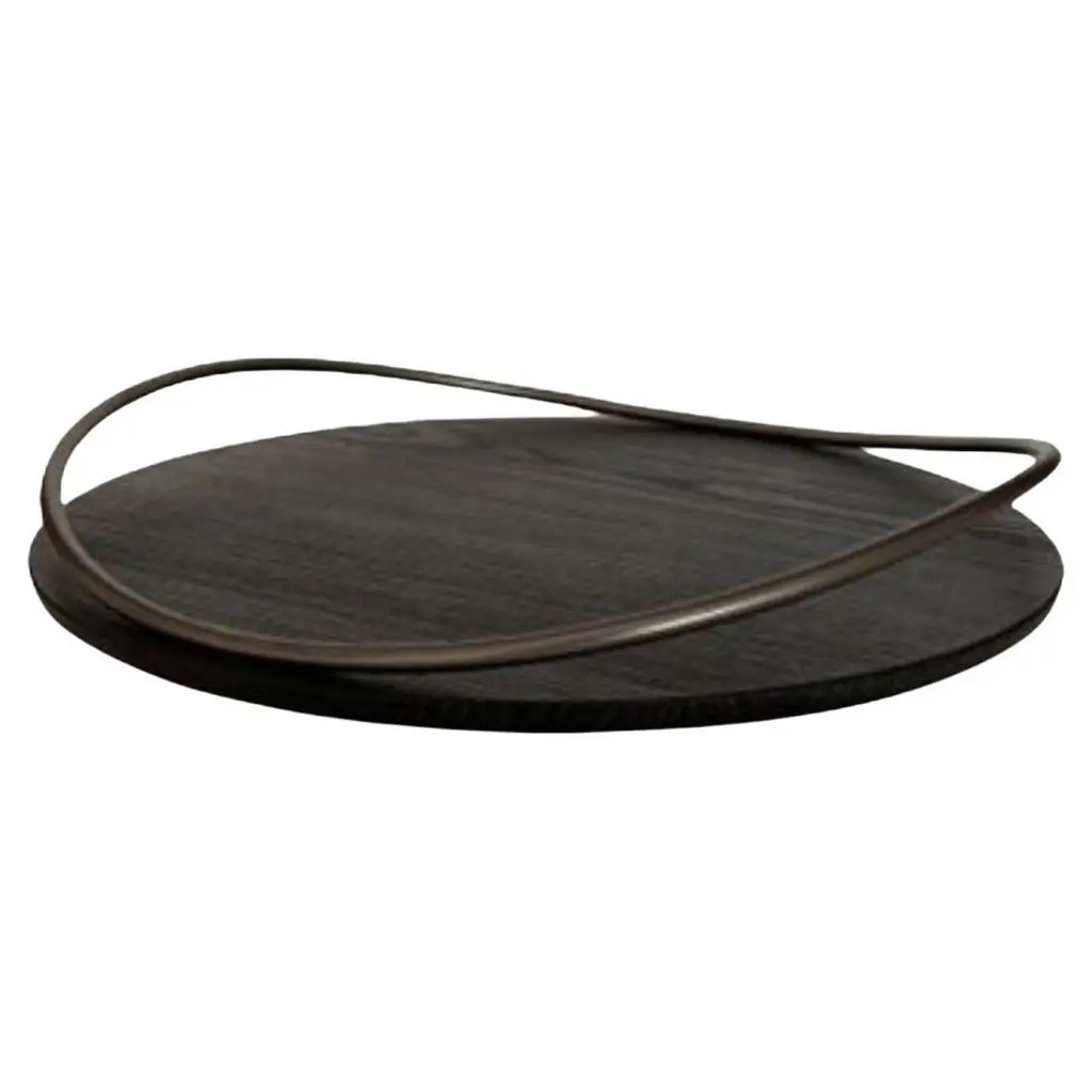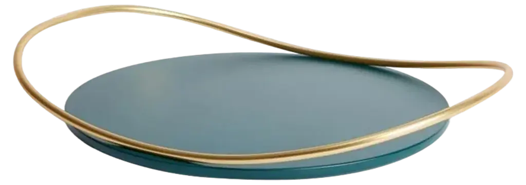 Touché Bois Canaletto oval handle by Mason EditionsDimensions: D 36 × H 4.4 cm, 48 cm with handleMaterials: Walnut canaletto wood A light metal rod that rests on the surface and then lifts up, almost touching the surface with a quick tap, a movement that defines the handles of Touché trays.The organic shape of the oval base communicates with the thin tubular, giving the impression of a perpetual undulatory motion, which seems to vanish when the trays are looked at from above.This oval tray with a round handle won’t go unnoticed in the eyes of your party and dinner guests.The round MDF base is available in several colours, with a slim handle in galvanized 24k gold. A sleek design that adds a touch of luxury to your dining experience.Mason Editions is an Italian company specialized in the production of design furniture, lighting solutions, and accent pieces. Born from the lifelong passion for lighting and entrepreneurial spirit of Fabio and his partner Silvia, Mason Editions places itself halfway between fine art and exquisite craftsmanship. A collection of lighting, design objects, and furnishing accessories, signed by artists Serena Confalonieri, Martina Bartoli, and Matteo Fiorini, head of the creative direction.Mason Editions comes from the experience of an Italian lighting company placed in the Veneto region.This new brand of furniture elements was born from the meeting between the entrepreneur Fabio Mason and three international designers who designed the first collection for a sophisticated public. Therefore the collection wants to be eclectic and timeless.The material contrast and fresh design, with essential shapes, mark the mason editions collection.In conclusion, the elegant Italian sign highlights proposals suitable for all environments.Mason editions is a set of experiences, artisans, and productive know-how that creates a capable system.