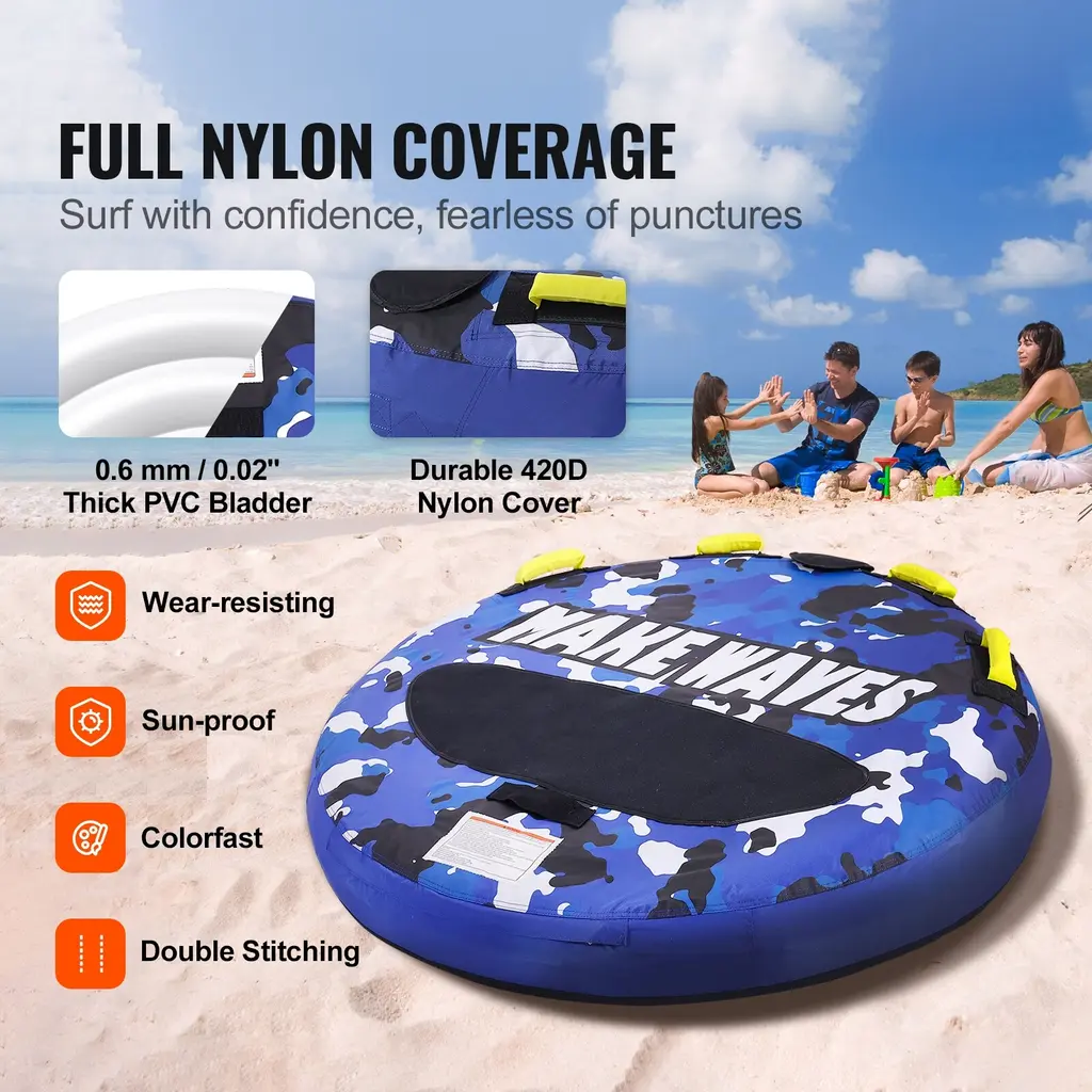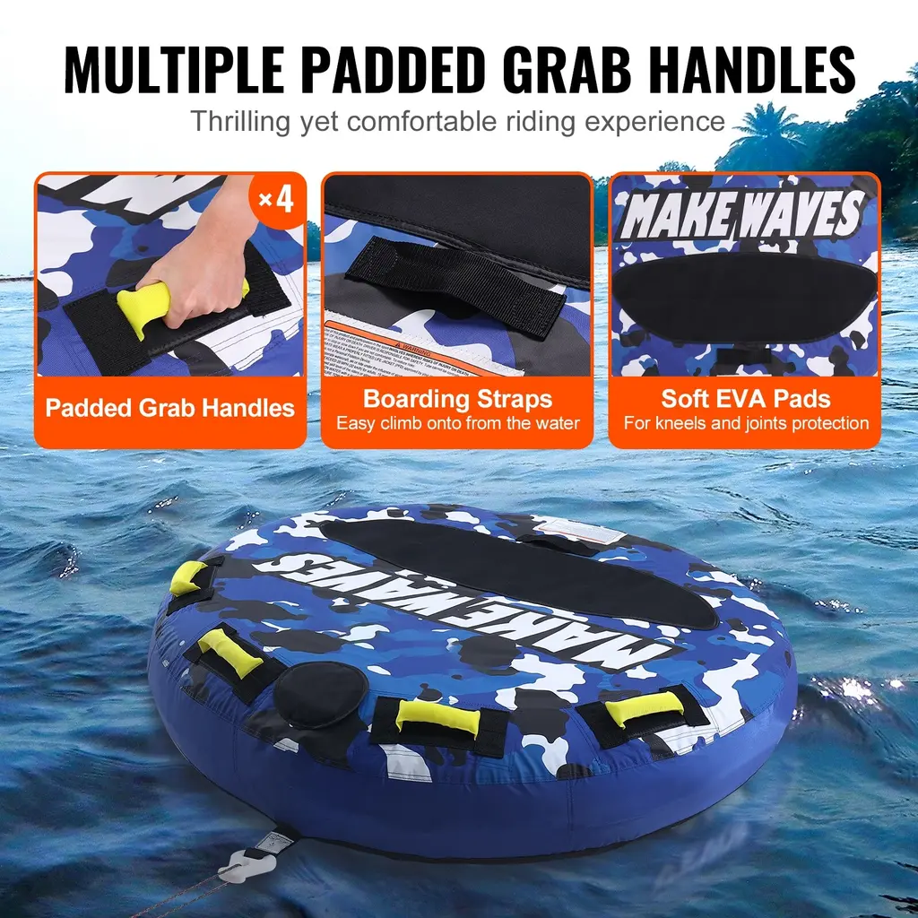 Towable Tube For Boating For Boat To Pull, Full Nylon Cover, Eva Grab Handles And Speed Safety Valve - Crawling Cushion-Round 2 People
