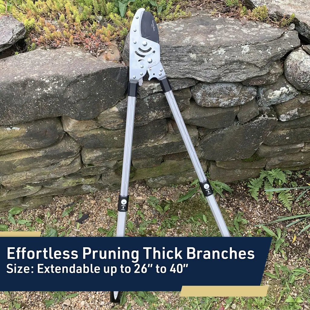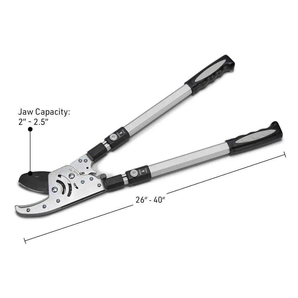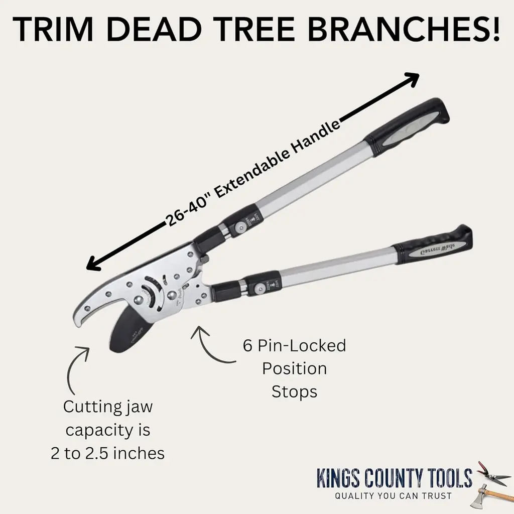Tree Trimmer Loppers - Double Ratcheting Anvil Lopper - Extendable 26" - 40" Long Handles By Kings County Tools - Black & Silver - Steel