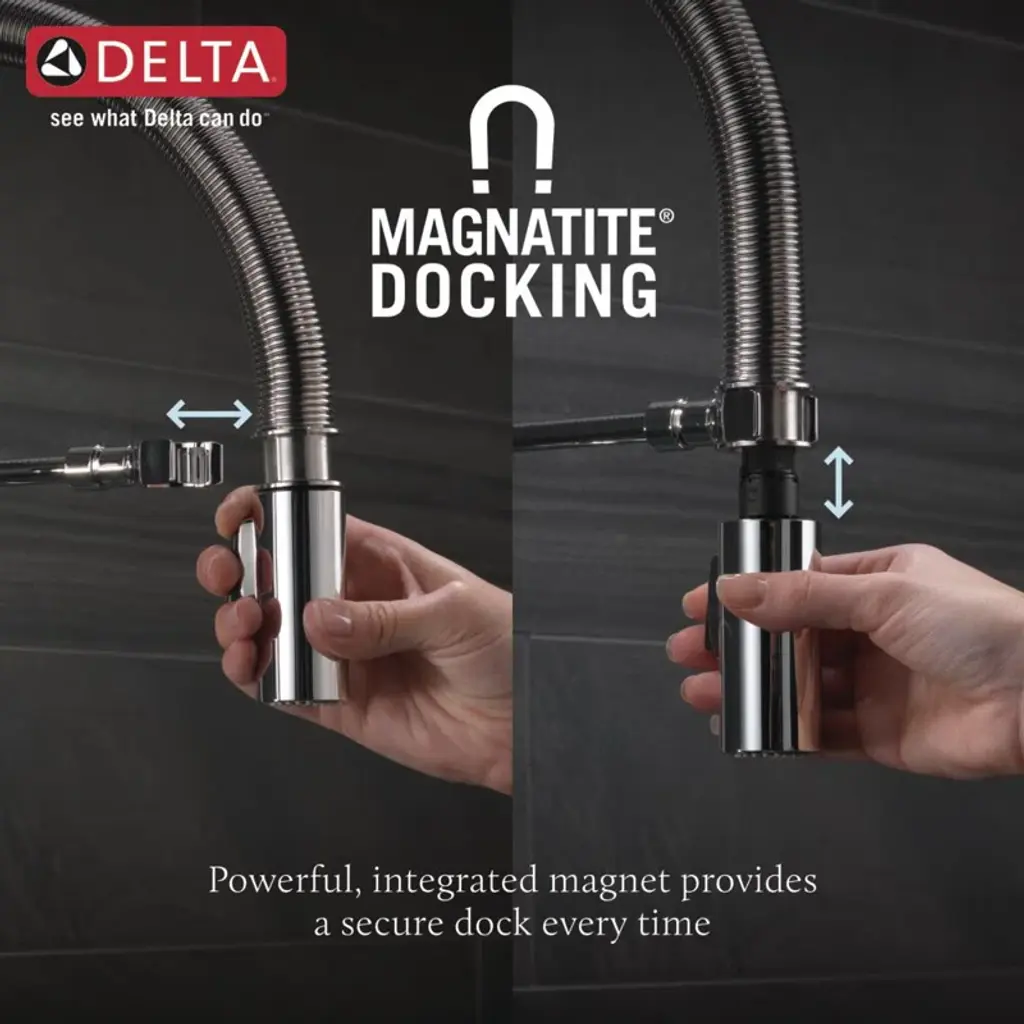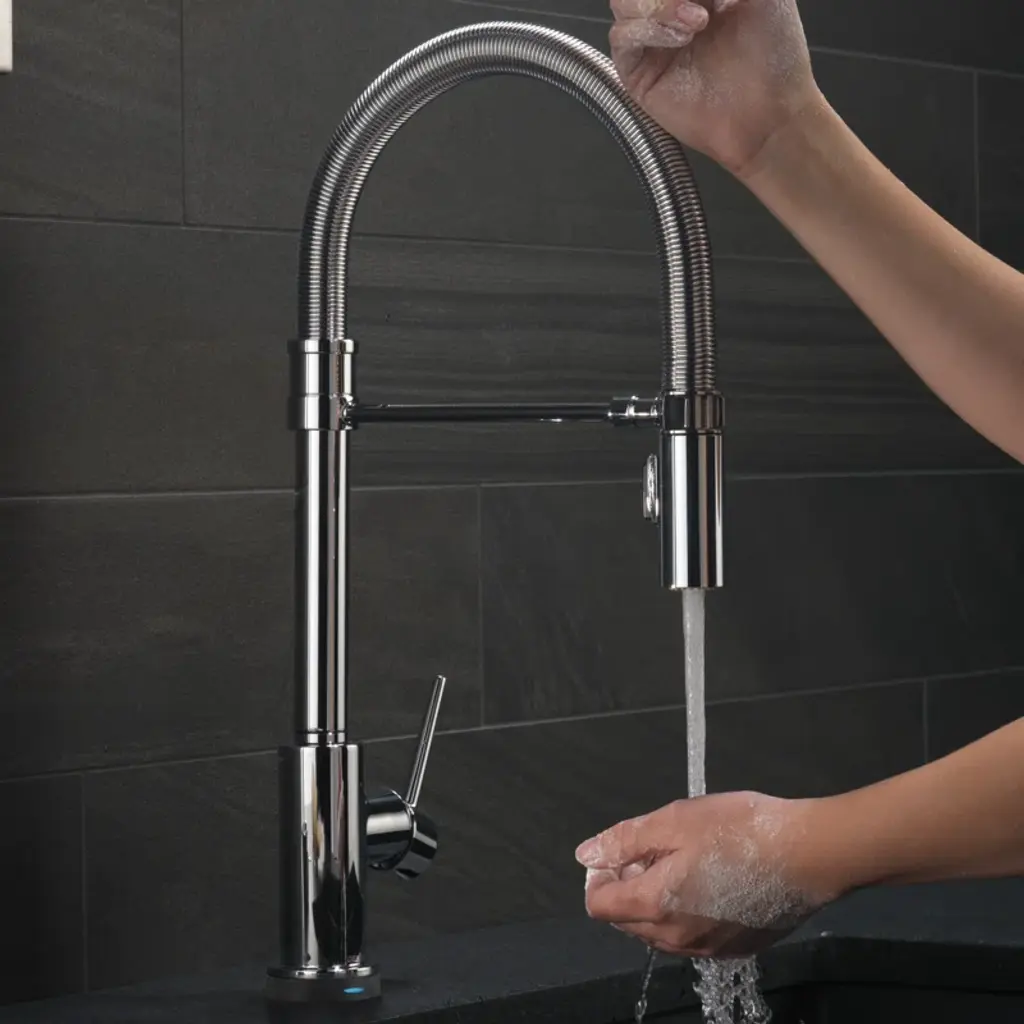 Upgrade your kitchen with this sleek and durable zinc faucet. Complete with a high-arc gooseneck spout, pull-down spray, and magnetic lock, it offers both style and convenience. The touch sensor adds an extra touch of modernity, while the ceramic disk cartridge ensures long-lasting performance. Perfect for residential and non-residential use.