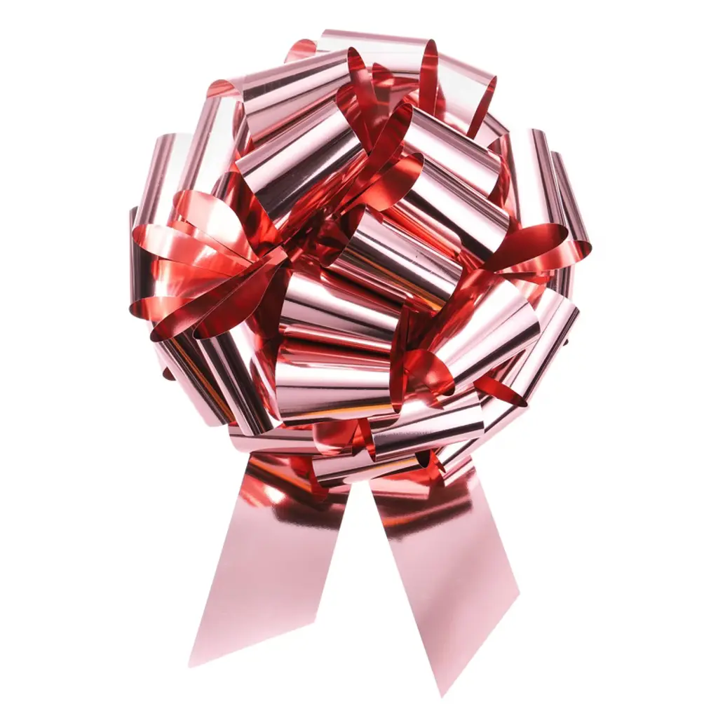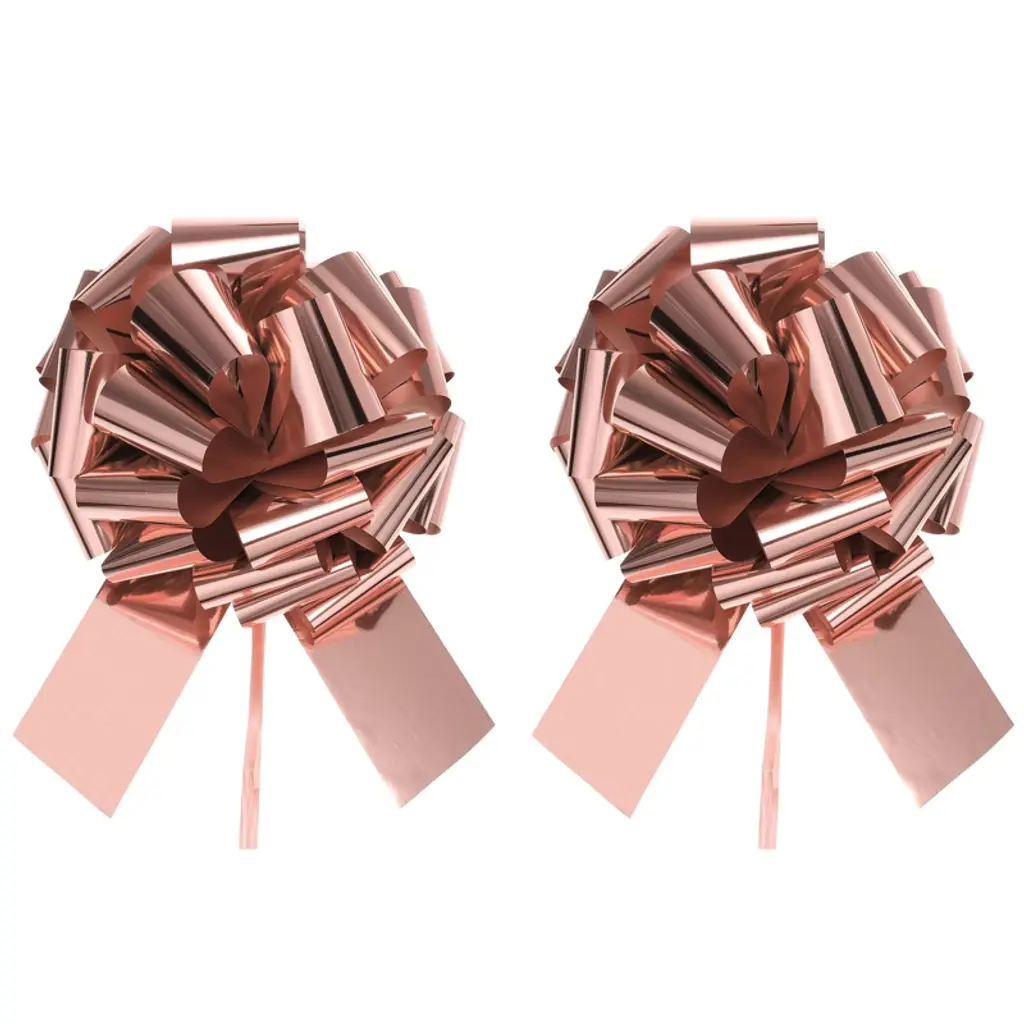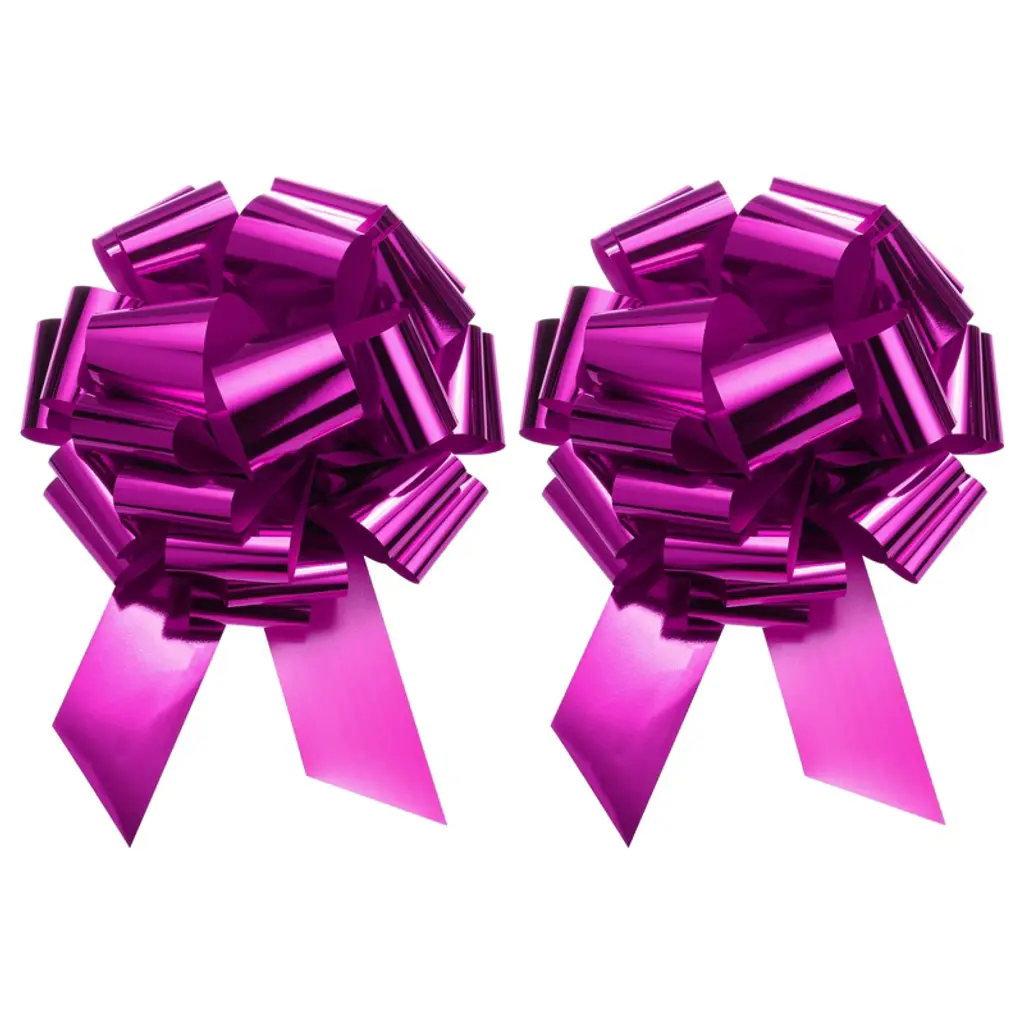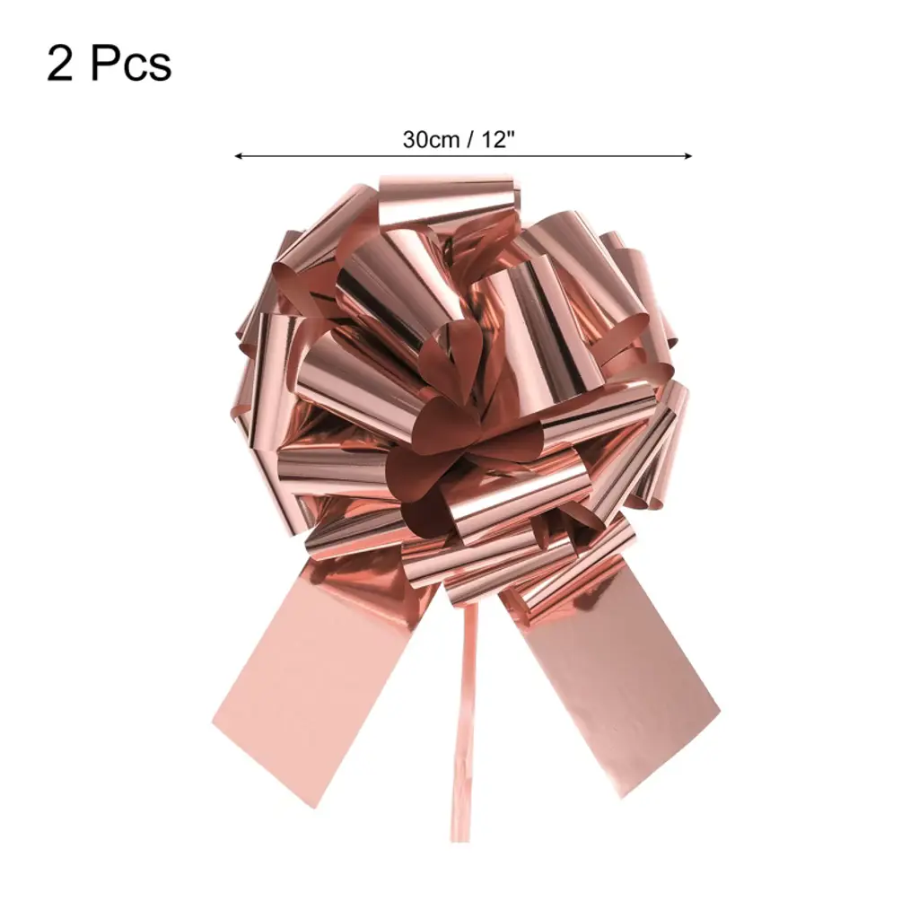 Unique Bargains Bright Durable Metallic Gift Wrapping Large Pull Bow For Wedding 2 Pcs Pink 12 Inch