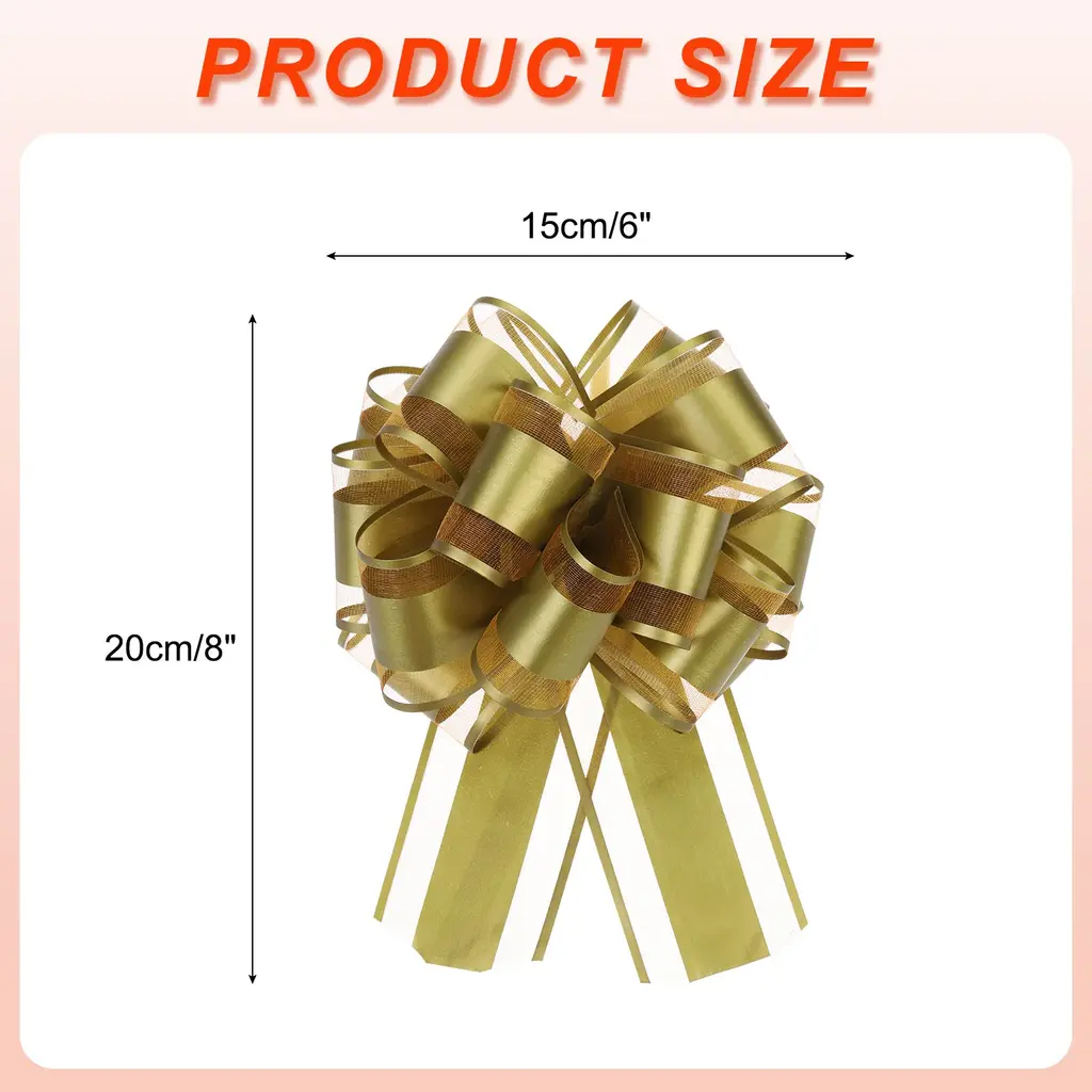 These vibrant organza pull bows to enhance your gift presentations and decorations. They are ideal for wedding cars, large gifts, and DIY crafts, making them versatile for occasions such as Valentine's Day, Christmas, and more. The bows are soft and comfortable to the touch yet durable enough to maintain their beauty over time. Gift-wrapping bows provide a substantial decorative presence. Ensure you choose the right specifications to suit your needs for different events and decorations.