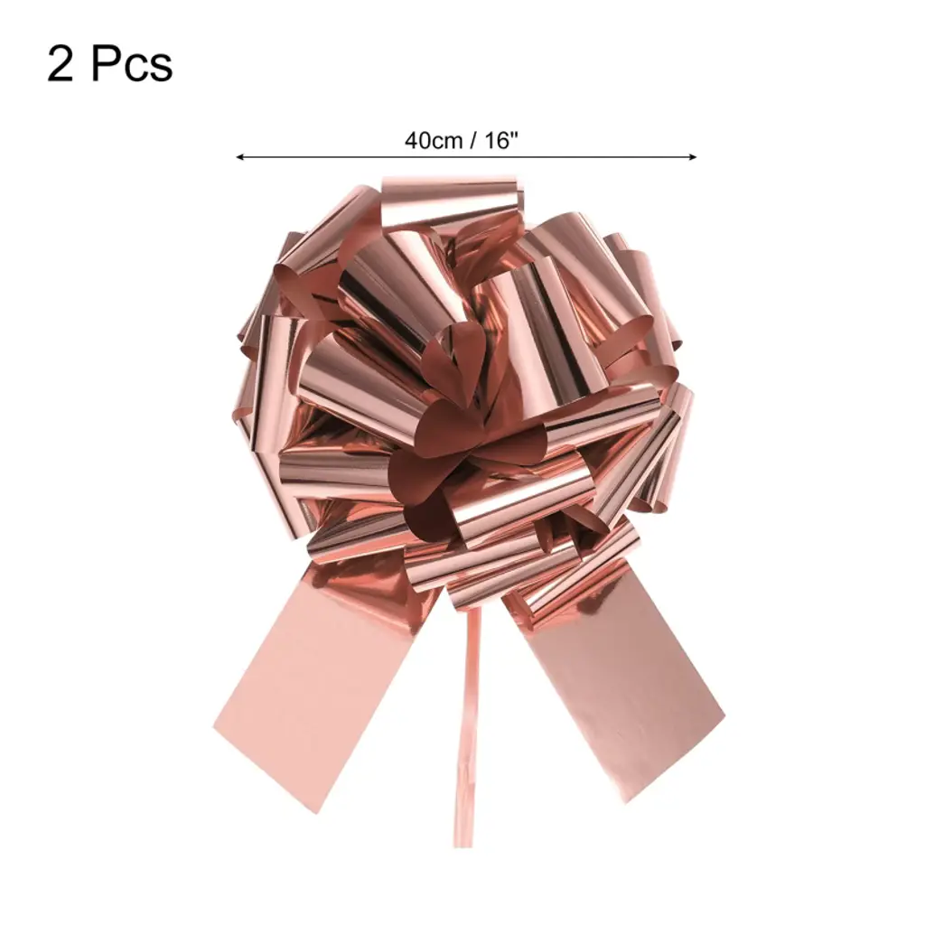Unique Bargains Bright Durable Metallic Gift Wrapping Large Pull Bow For Wedding 2 Pcs Pink 16 Inch