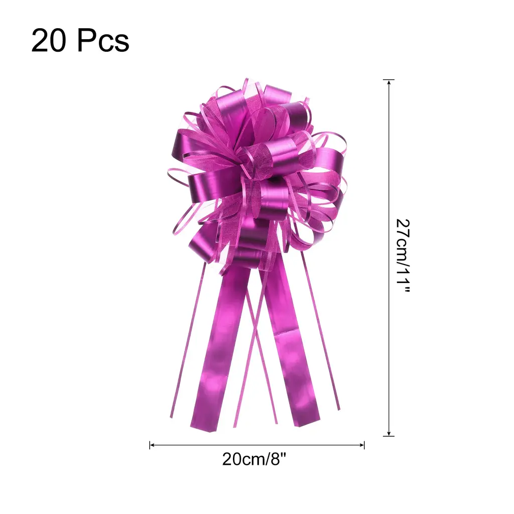 These vibrant organza pull bows to enhance your gift presentations and decorations. They are ideal for wedding cars, large gifts, and DIY crafts, making them versatile for occasions such as Valentine's Day, Christmas, and more. The bows are soft and comfortable to the touch yet durable enough to maintain their beauty over time. Gift-wrapping bows provide a substantial decorative presence. Ensure you choose the right specifications to suit your needs for different events and decorations.