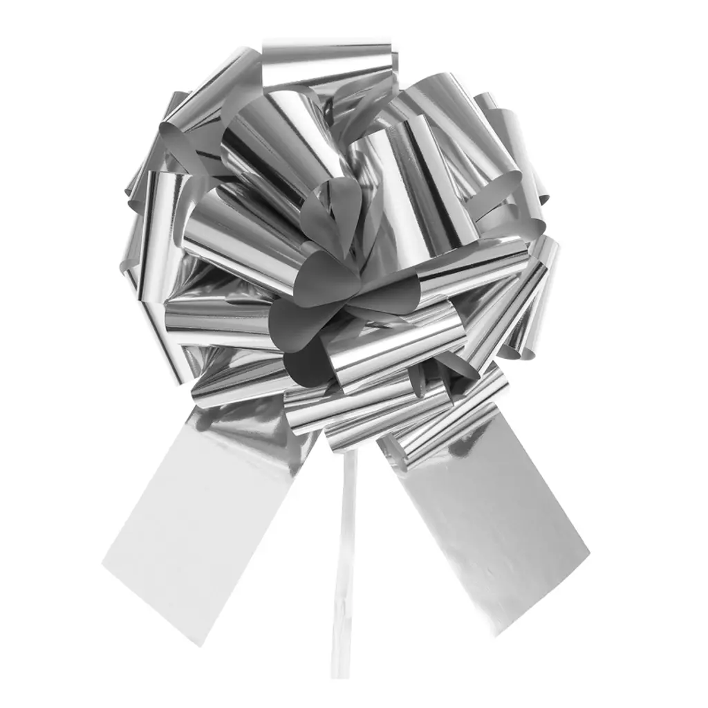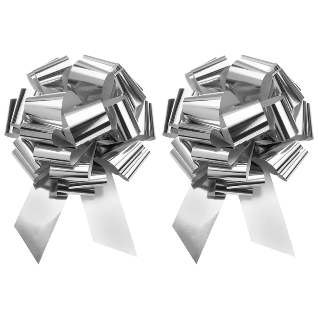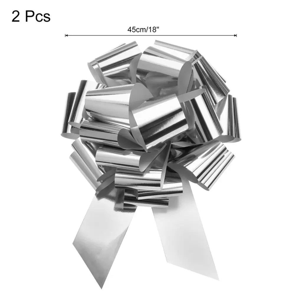 Unique Bargains Bright Durable Metallic Gift Wrapping Large Pull Bow For Wedding 2 Pcs Silver 18 Inch