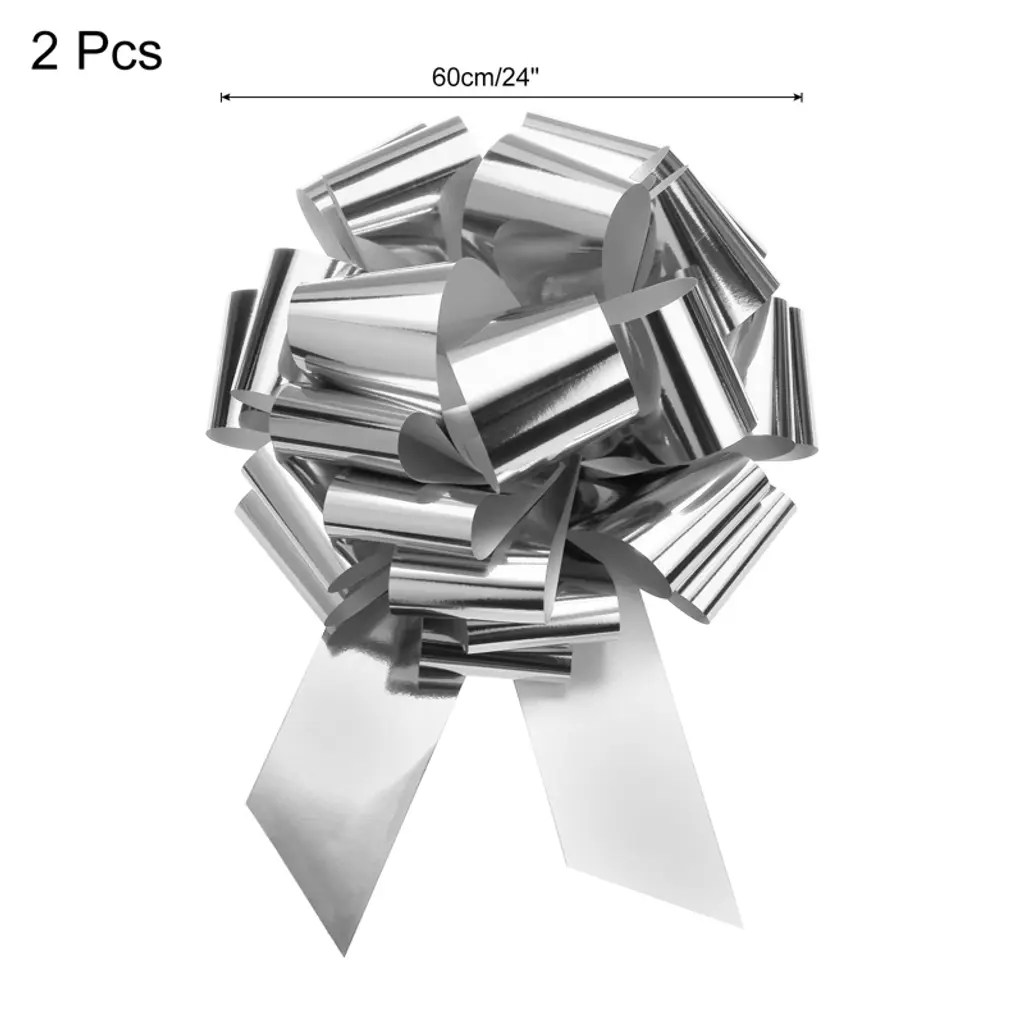 Unique Bargains Bright Durable Metallic Gift Wrapping Large Pull Bow For Wedding 2 Pcs Silver 24 Inch