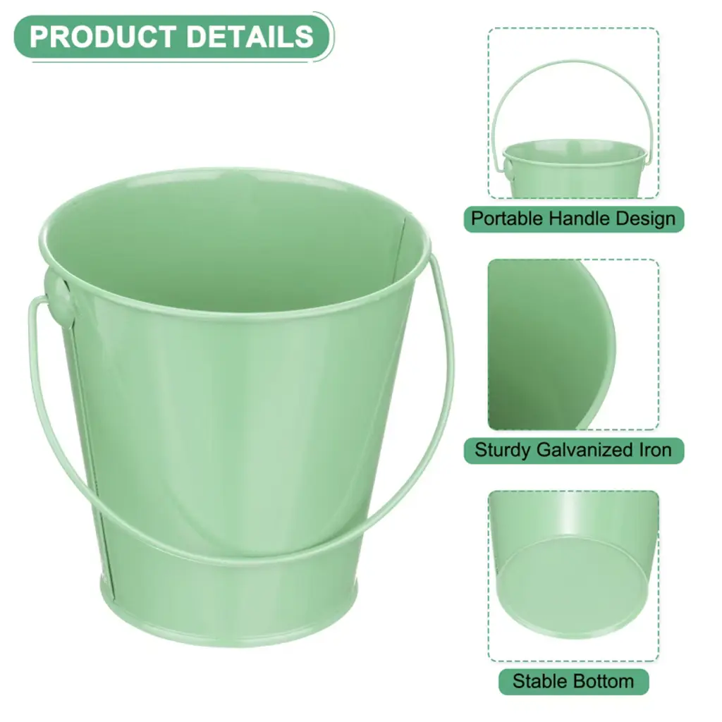 These small metal buckets with handles are versatile containers suitable for gardening, planting flowers, storing tools, organizing small items, or adding a rustic touch to home decor. Featuring a classic and durable design, these small metal buckets are crafted from galvanized metal, ensuring resistance to corrosion and longevity. The sturdy handle provides easy carrying and hanging options for various uses. The small metal bucket with a handle serves multiple functions, such as holding soil, carrying water, displaying plants, storing garden supplies, or serving as a decorative accent. Its compact size makes it good for small-scale gardening tasks. When using galvanized buckets for gardening, ensure proper drainage holes are added if using them as plant containers. Regularly clean and dry the buckets to prevent rust formation. Avoid leaving the metal buckets in prolonged contact with moist soil to maintain their condition.