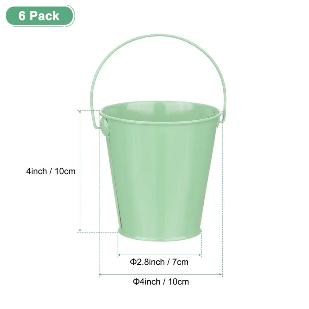 Unique Bargains Garden Galvanized Versatile Durable Bucket With Handle 6 Pcs Light Green