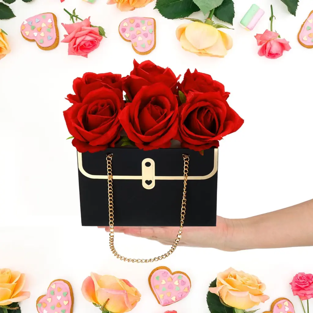 Made of thick, sturdy cardboard, this flower gift bag is unbreakable. Designed in the shape of a handbag, this modern and stylish design looks elegant and allows flowers to be easily and flexibly unfolded, showcasing their beauty. The double handles make carrying easy. The flower gift box is specially designed for flower packaging and can be used to store a variety of flowers for a more beautiful look. It's widely used for weddings, Valentine's Day, birthdays, anniversaries, Thanksgiving, Christmas, graduations, and other occasions.
