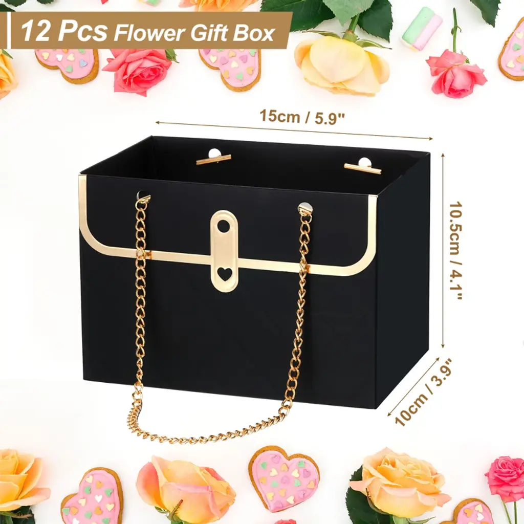 Unique Bargains Rectangle Metal Chain Paper Flower Gift Bag With Handle 12 Pcs Black