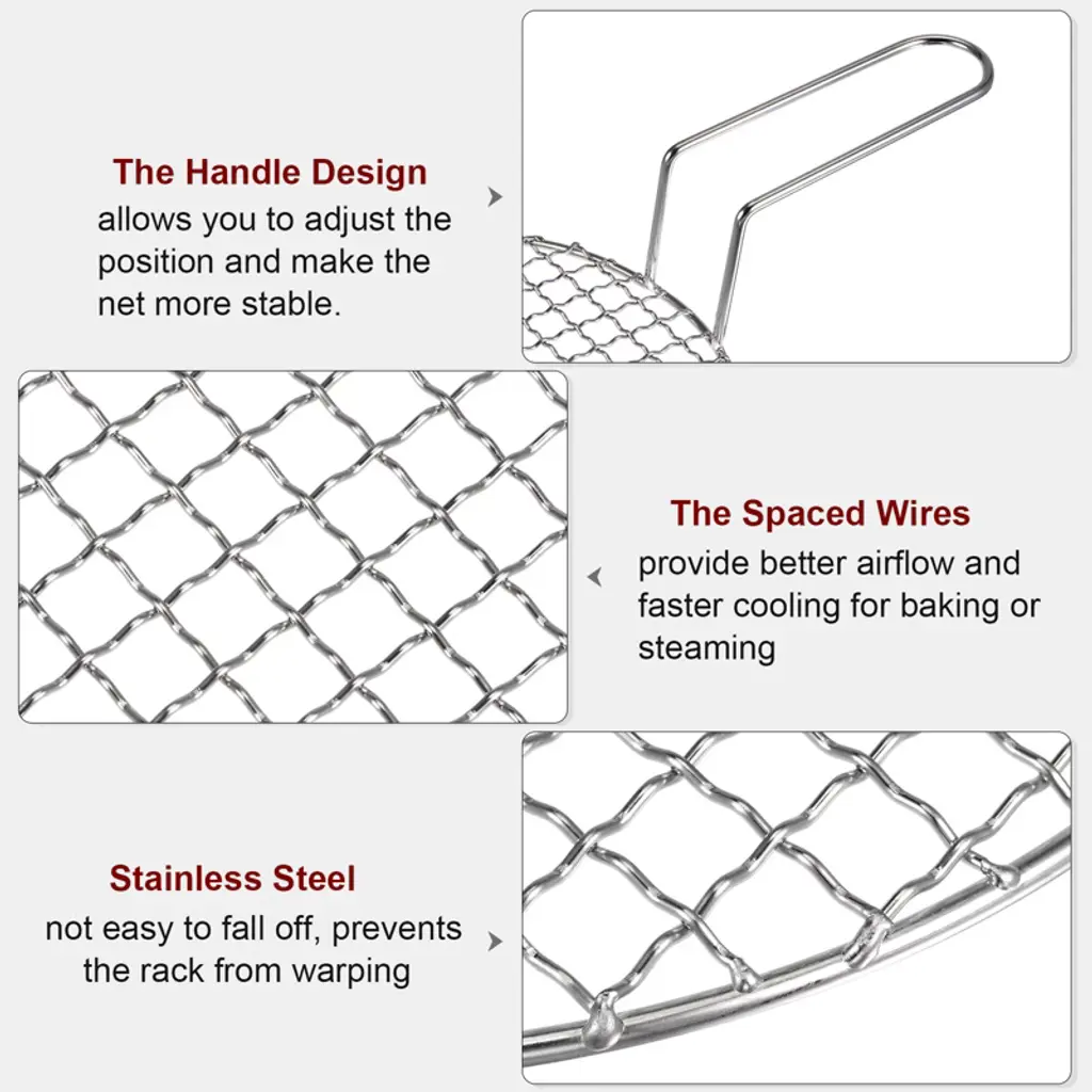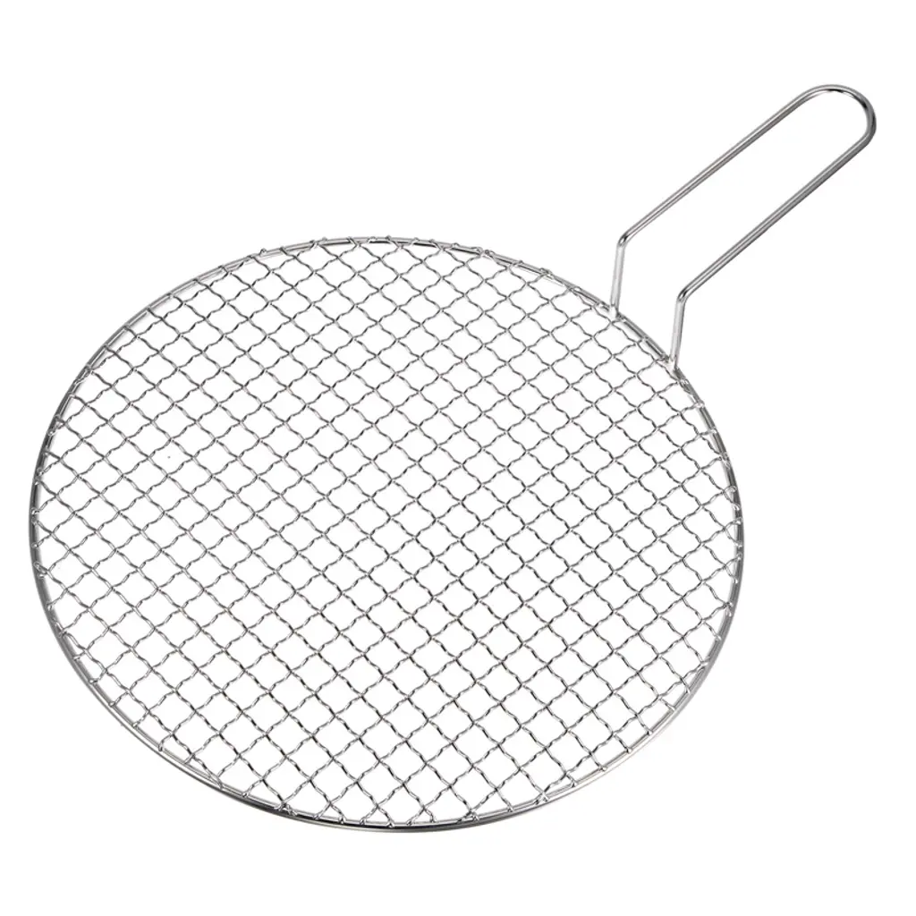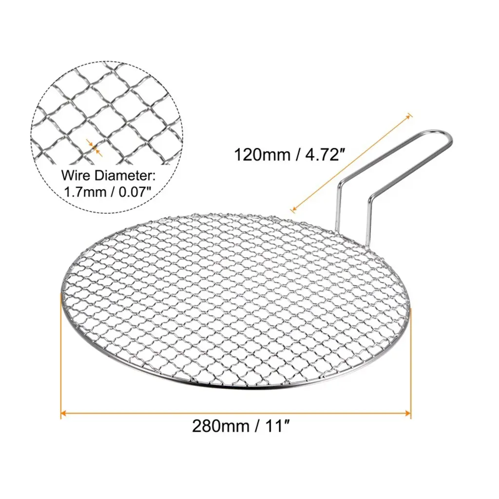 Unique Bargains Stainless Steel Grills Round Barbecue Mesh Outdoor Grill With Handle 11-inch