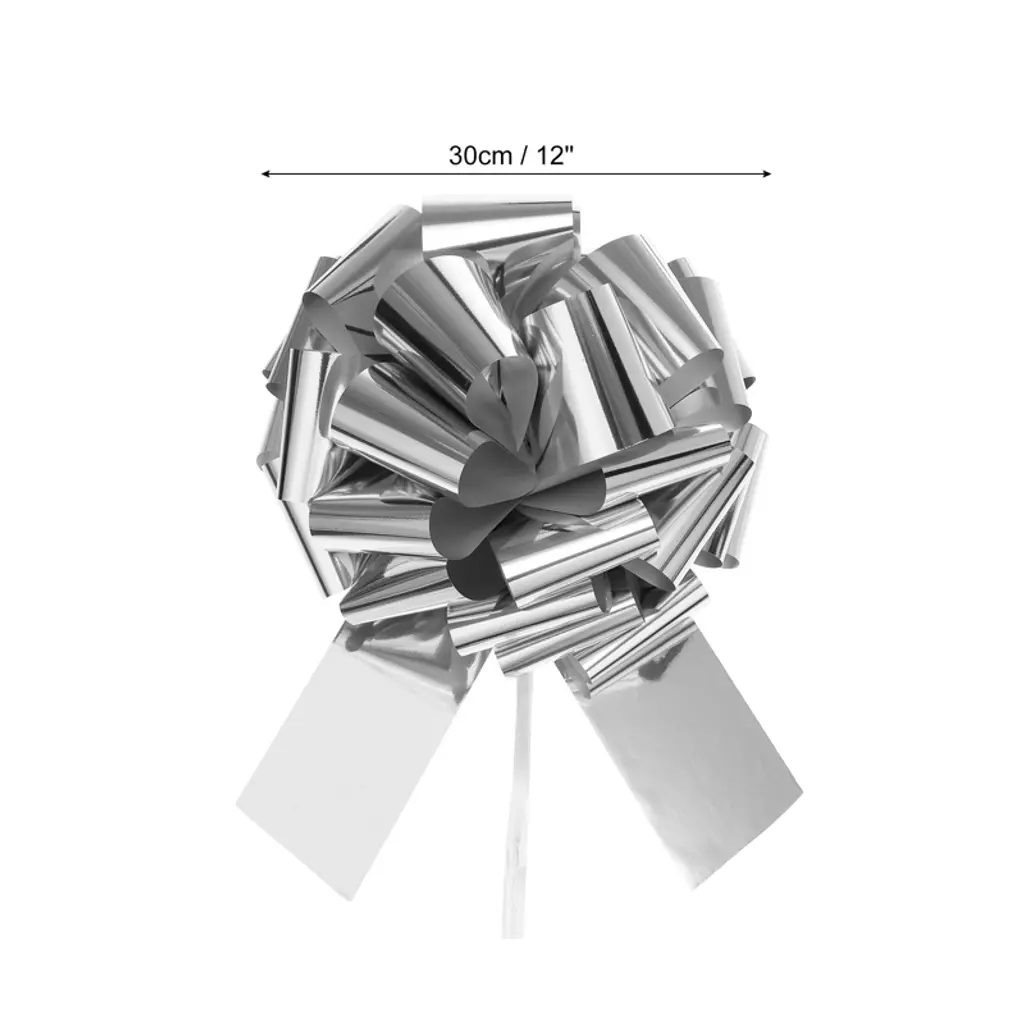 Unique Bargains Wedding Christmas Bright Metallic Gift Wrapping Large Pull Bows Ribbon 1 Pc Silver 12 Inch