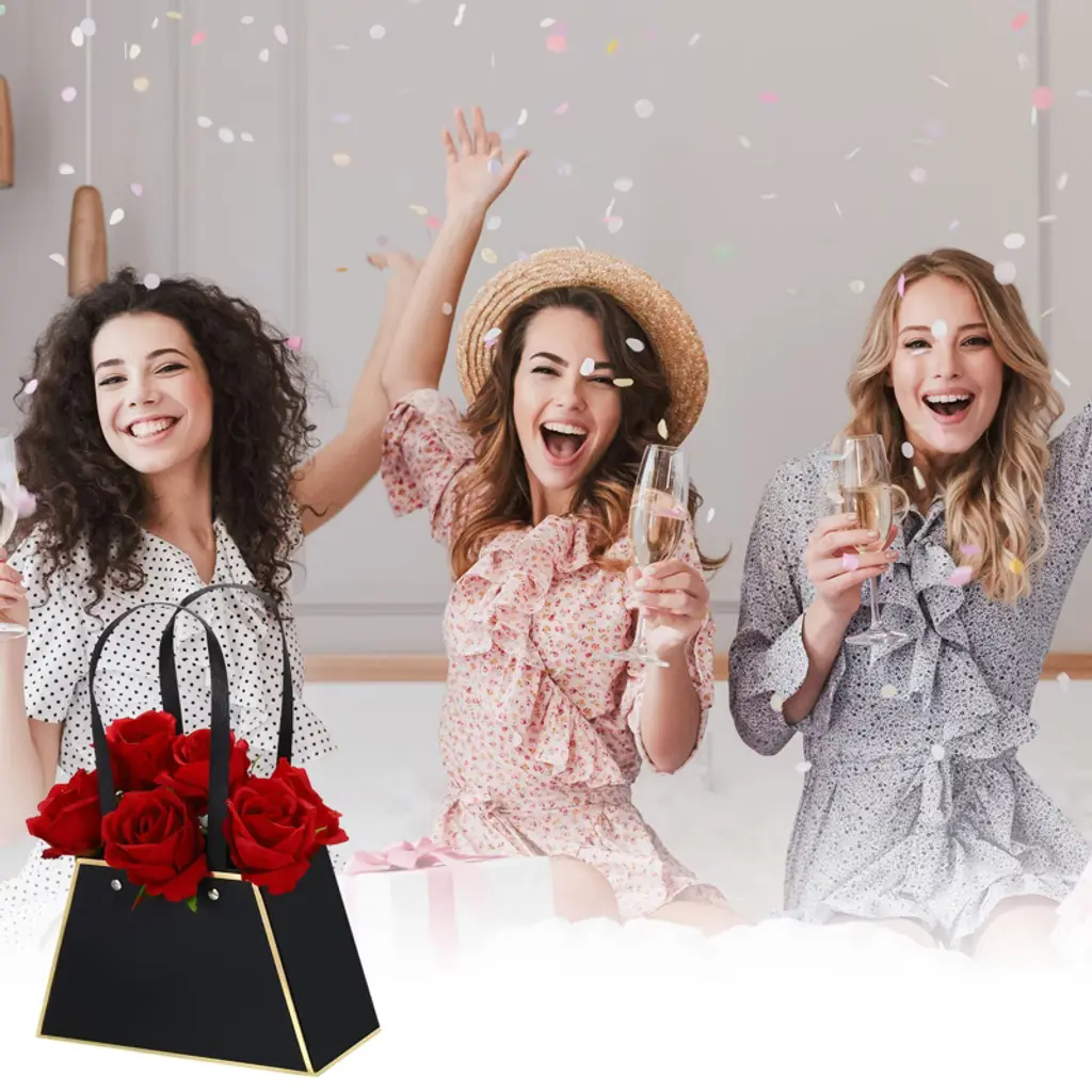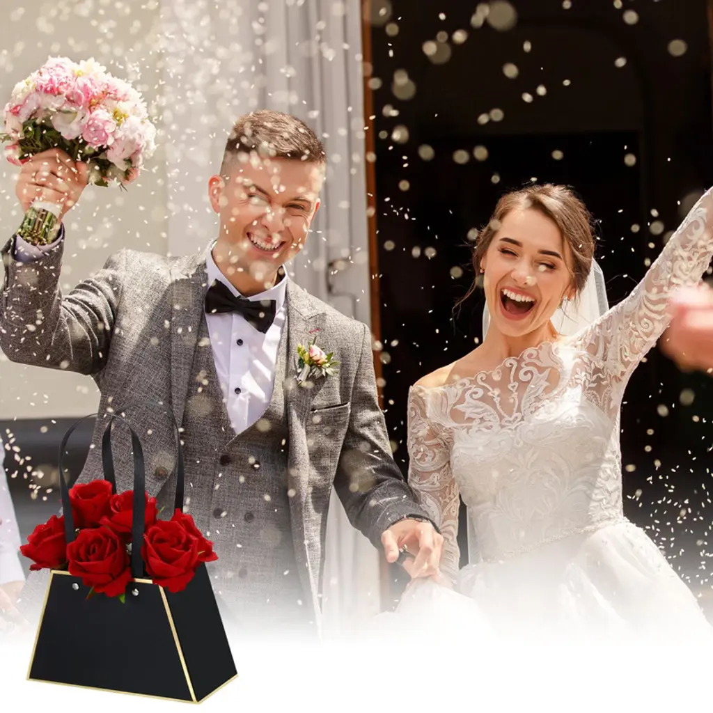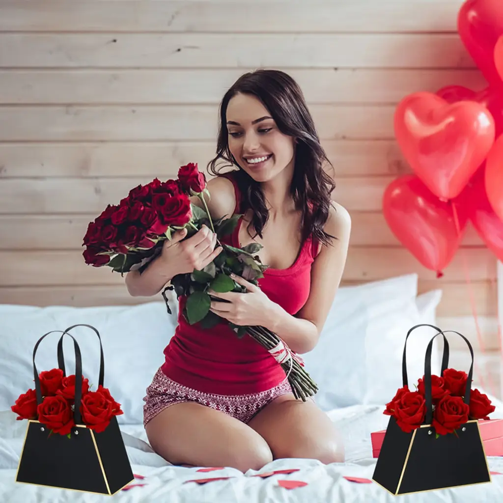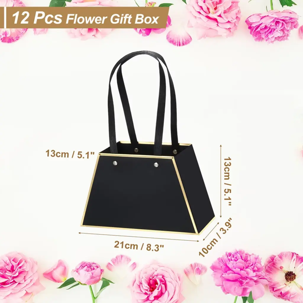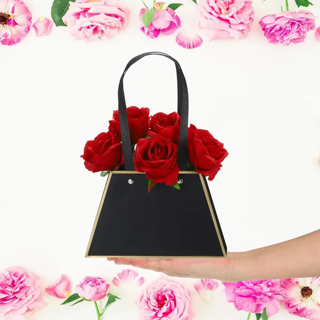 Made of thick, sturdy cardboard, this flower gift bag is unbreakable. Designed in the shape of a handbag, this modern and stylish design looks elegant and allows flowers to be easily and flexibly unfolded, showcasing their beauty. The double handles make carrying easy. The flower gift box is specially designed for flower packaging and can be used to store a variety of flowers for a more beautiful look. It's widely used for weddings, Valentine's Day, birthdays, anniversaries, Thanksgiving, Christmas, graduations, and other occasions.