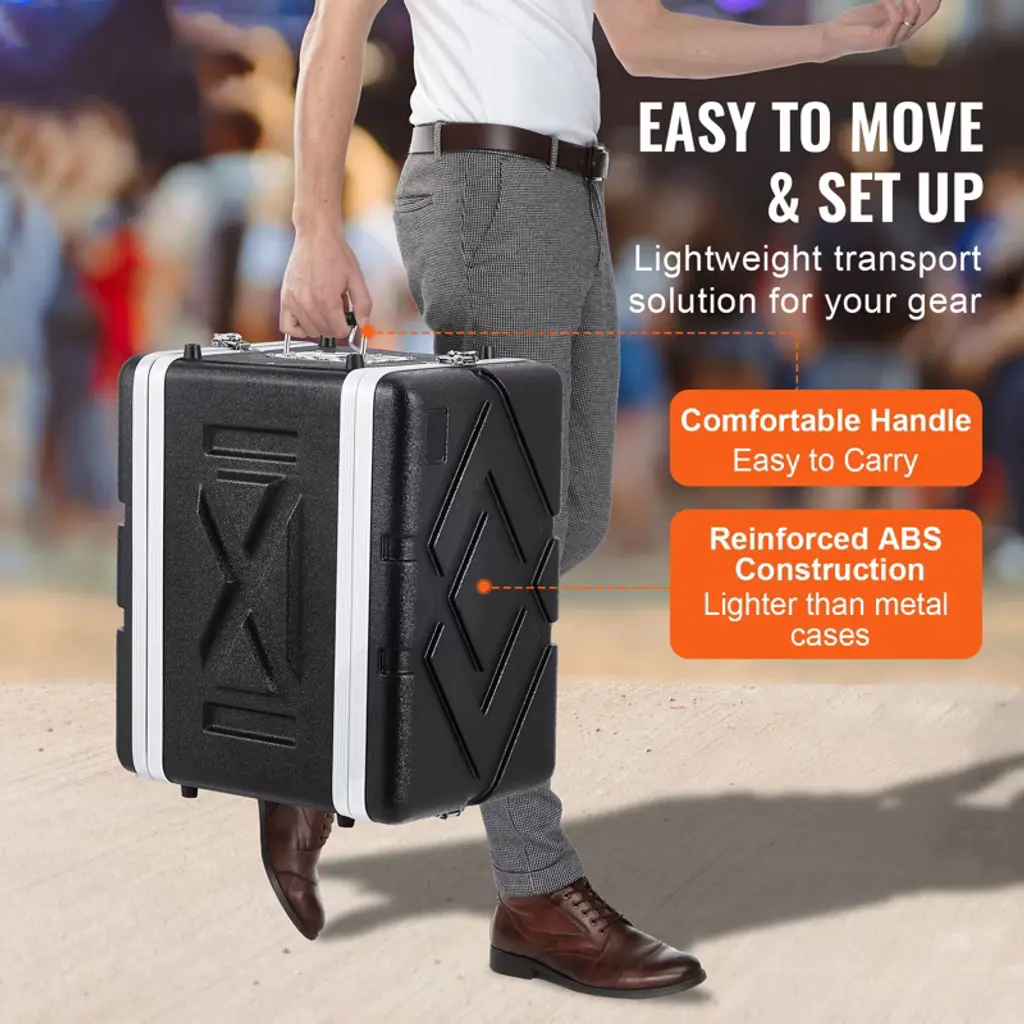 Feature: Compact and Reliable: This 6U rack case is designed for 14-inch-deep equipment. Its durable ABS shell provides reliable protection and stability for your equipment, making it ideal for studios, live events, and data centers. This gives you confidence that your equipment is in secure hands. Convenient to Carry: The rack case, featuring a robust handle, simplifies moving your equipment between locations. It’s an ideal choice for professionals who value efficient, hassle-free transport of rack-mounted equipment. Security Comes First: Heavy-duty twist butterfly latches to ensure your equipment stays securely stored and protected during transit. This feature is precious for high-value or sensitive items that demand extra security. Easy Cable Access: Detachable front and back panels allow easy access for installation and maintenance. You can quickly perform upgrades or repairs without disassembling the entire case, streamlining your operations. Outdoor-Ready Design: The rack case includes sealing strips that provide high protection against dust and water, making it suitable for various environments. This feature allows you to keep your equipment in excellent condition, whether in the studio, at live events, or during transport, giving you peace of mind. Package Content 1 x Rack Case 1 x Screw Accessory Kit