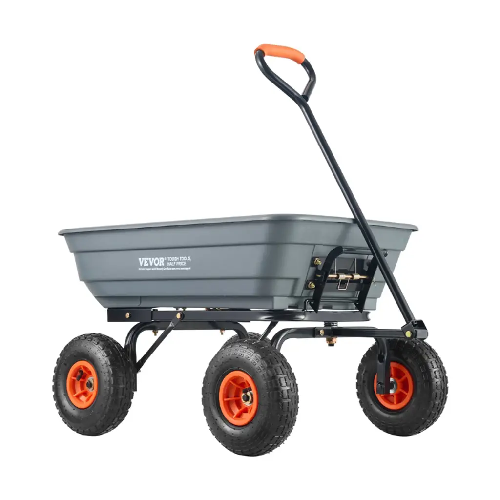 Vevor Garden Cart, Durable Poly Dump Cart With Simple Assembly Steel Structure, Versatile Dump Wagon With Dual-function Handle, Handy Wheelbarrow