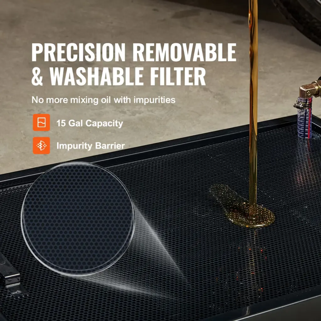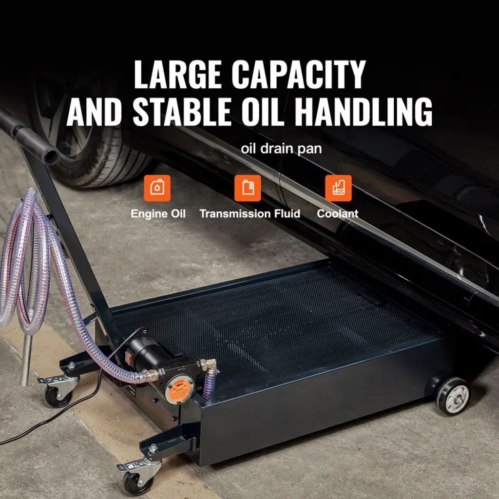 Vevor Low Profile Oil Drain Pan, 15 Gallon Oil Drain Pan With Pump, Oil Change Pan With 180w Electric Pump, 8.2ft Hose & Folding Handle