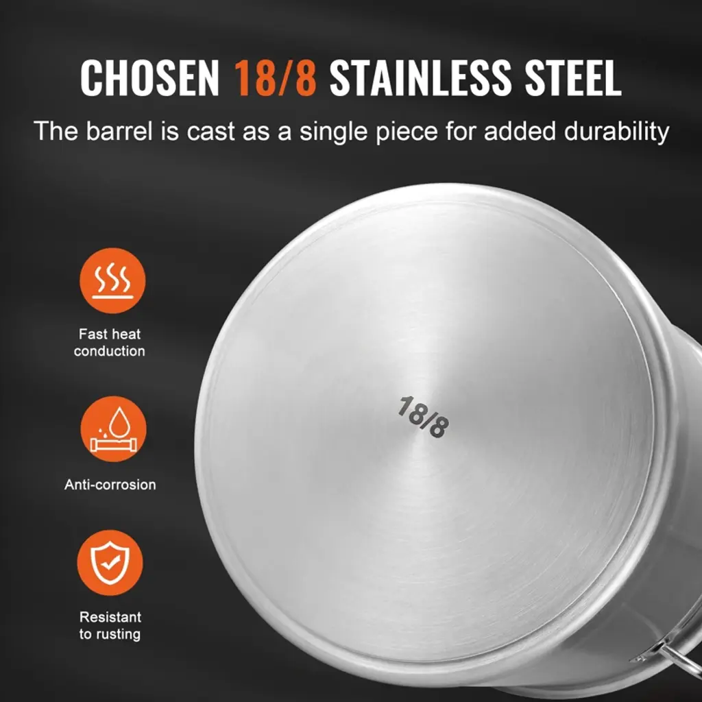 Vevor Stainless Steel Stockpot, 42 Quart Large Cooking Pots, Multipurpose Cookware Sauce Pot With Lid & Handle, Heavy Duty Grade Stock Pot, Silver