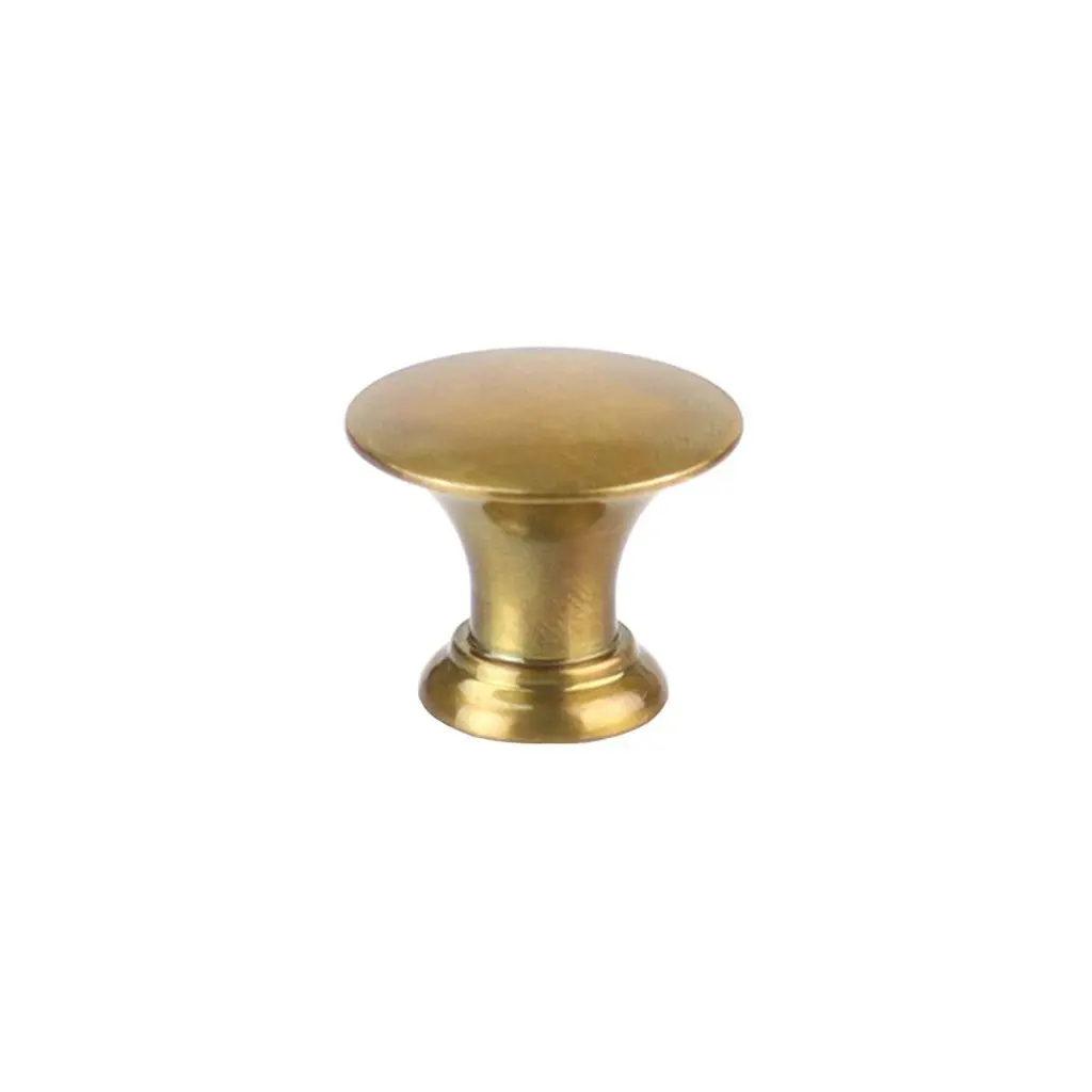 A distinctive, button-shaped pull. The flared profile springs to a slightly cambered top. Fingers easily find their place between the perfectly round face and a full, filleted rose. Metal finishes available in antique brass or satin nickel. Custom metal finishes available upon request.The Vica Pull takes 8-32 size screws, which are not included.