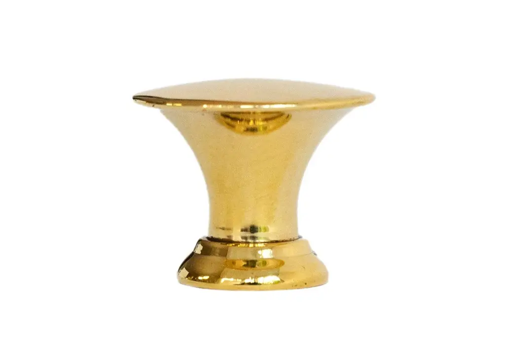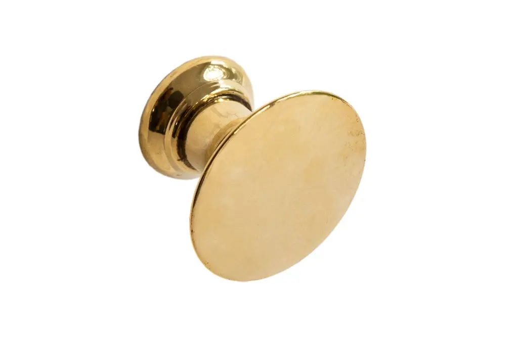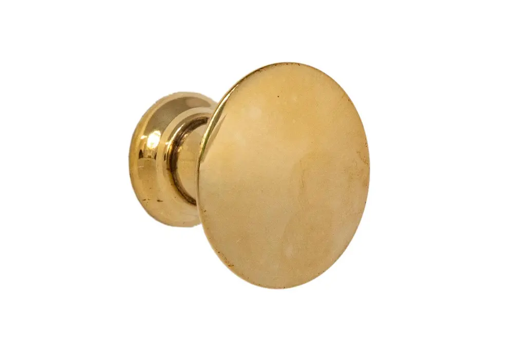A distinctive, button-shaped pull. The flared profile springs to a slightly cambered top. Fingers easily find their place between the perfectly round face and a full, filleted rose. Metal finishes available in satin nickel or antique brass. Custom metal finishes available upon request.The Vica Pull takes 8-32 size screws, which are not included.