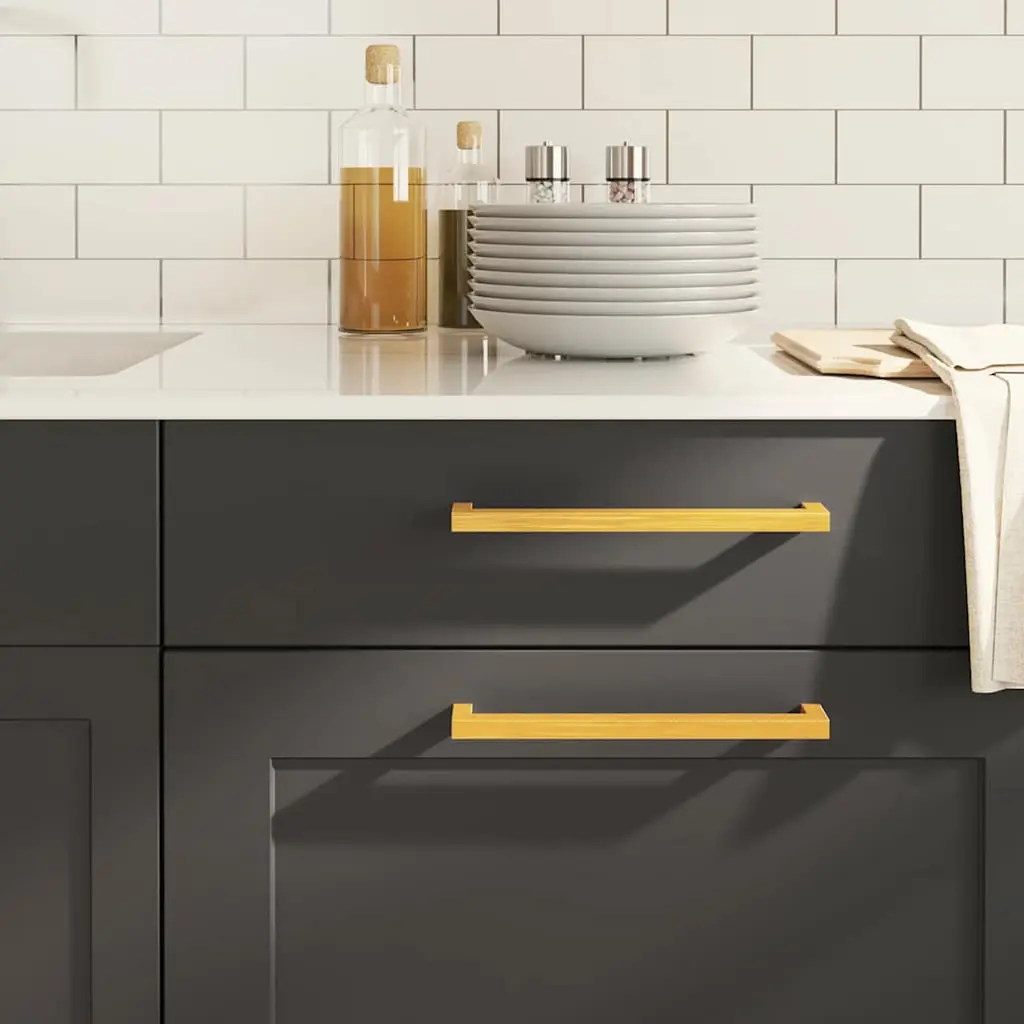 This set of cabinet handles brings a fab modern look that enhances any kitchen or cabinetry. Their sleek stainless steel design and bright gold finish perfectly blend functionality with style, fitting in great with various modern home setups. The polished stainless steel surface not only offers durability but also adds a touch of sophistication to cabinets and drawers. Each handle is designed with a D-pull shape for easy gripping while maintaining a streamlined look. This set comprises five handles, making it perfect for outfitting multiple cabinetry pieces or simply giving a coordinated look to your space. It includes all mounting hardware necessary for a hassle-free installation, allowing you to upgrade your decor quickly. Ideal for kitchen cabinets, drawers, cupboards, or any furniture needing a refresh, ensuring versatility in usage.