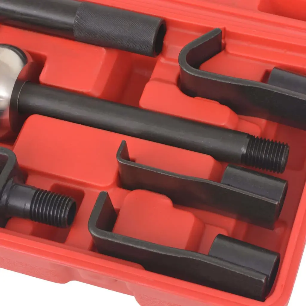 This tool is great for auto body repairs. This case contains 10 assorted adapters and attachments such as hooks, a lever, a chain etc. The hooks, pullers and attachments are fully made of hardened drop forged steel. The solid steel shaft has knurled handles for secure grip.This set has an extensive range of professional parts to pull out dents from the body of your car. This heavy duty slide hammer dent puller can be used for industrial use or just as a do-it-yourself tool. This set is complete with a plastic case for organization and storage.