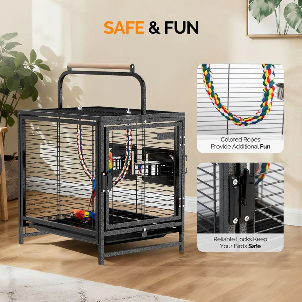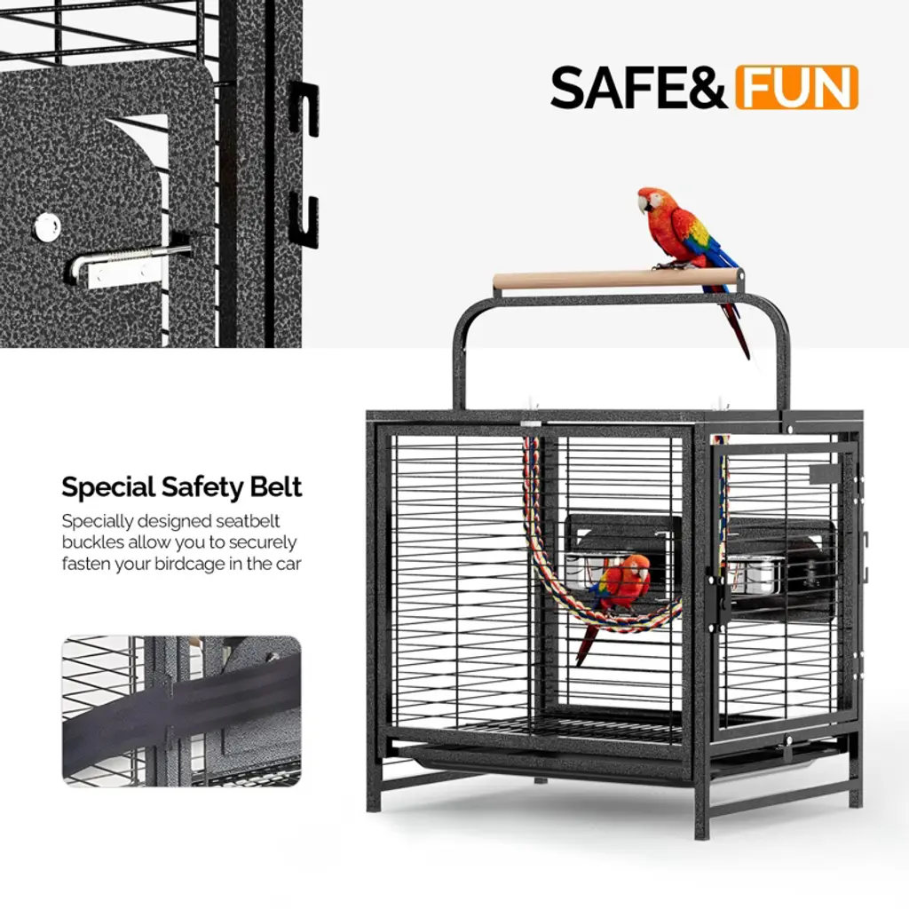 Vingli Bird Cage, 25 Inch Wrought Iron Bird Travel Carrier, Cage With Handle For Parakeets, Parrot, Lovebirds, Finches, Small/medium Birds