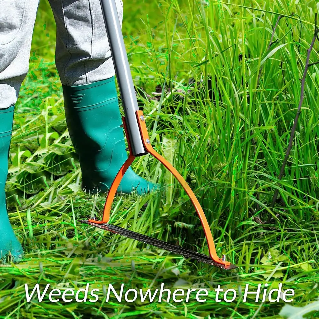 Double-edged Serrated Blades: With each swing, Walensee weed grass cutter with a serrated double-edged steel blade is sharp enough to easily trim grass and overgrown weeds in the yard, garden, lawn, fields, and ditches. The blade is 14 inches long and is suitable for wider extensions, it can work in both forward and backward motion. The serration on the blade's double edge increases efficiency by cutting tall growth with effectiveness for uneven garden and fence line where mower will not fit. Durable Material: Walensee weed cutter serrated blade is made of high-grade stainless steel that has been precisely sharpened and can readily cut through overgrown grass and thick weeds. It's strong and ready to handle all of your cuttings. You don't need to worry about it working in rainy day, the steel blade is anti-rust and durable to last for years. It is easily slice through stems of 4 foot tall bull thistle, various and sundry hollow stem weeds of multiple heights in the yard, fields. Ergonomic and Humanized Design: The length of the handle is 30 inches and can help you complete the garden work without bending over. The handle is made of high-quality steel, and it is more durable than wood handle, won't broken. Soft rubber grip allows you to use it for a long time without feeling tired. It is only 3 LBS, is very lightweight, 3 pounds of weight minimizes arm pressure and makes it possible for old people to use the grass cutter easily, and will add joy to your working time. Easy to Assemble and Use: It is easy to assemble the blade of manual grass whip with the instruction and tools provided, the handle can be quickly installed by tighten the locking screw by tools. To use it just need to hold the handle in a golfing position and swing it back and forth as if it were a golf club. The handle is fastened at an angle to make it simpler to cut sod, overgrown weeds, tall grass and bushes. 100% Satisfaction Guaranteed: If you are not completely satisfied with our weed grass cutter, you'll get every penny refunded to you, no questions asked.
