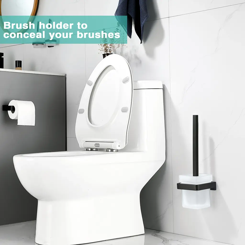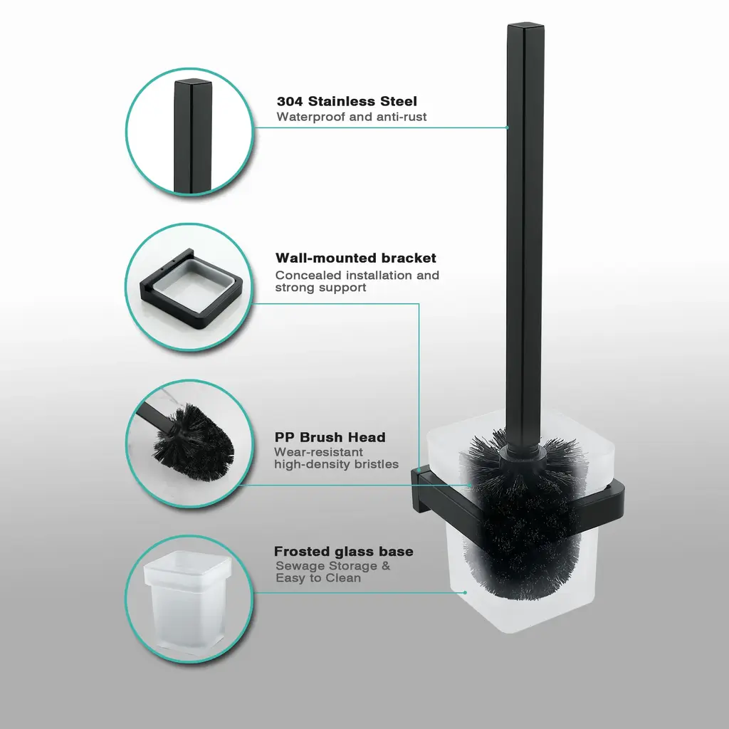 Upgrade your bathroom space and enjoy tidiness and convenience. This wall-mounted toilet brush and holder features an exquisite design and high-quality materials, bringing a new experience to your life. The stainless steel handle is sturdy and durable, and the glass base exudes elegance. Instantly elevate the style of your bathroom. Easily installed and space-saving, it is the ideal choice for modern homes. Features: