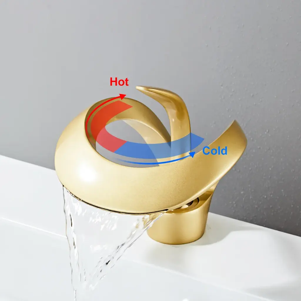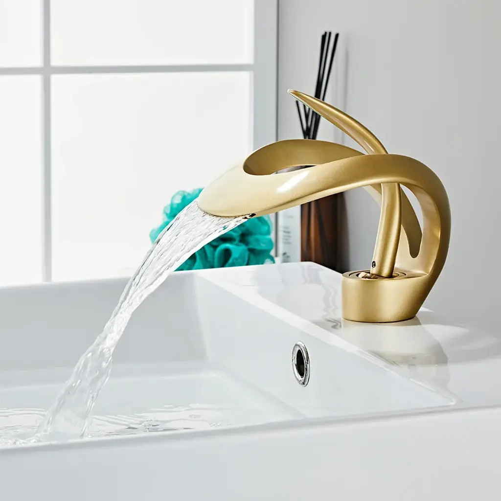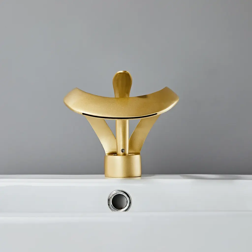 Waterfall Bathroom Sink Faucet In Gold Single Handle Solid Brass
