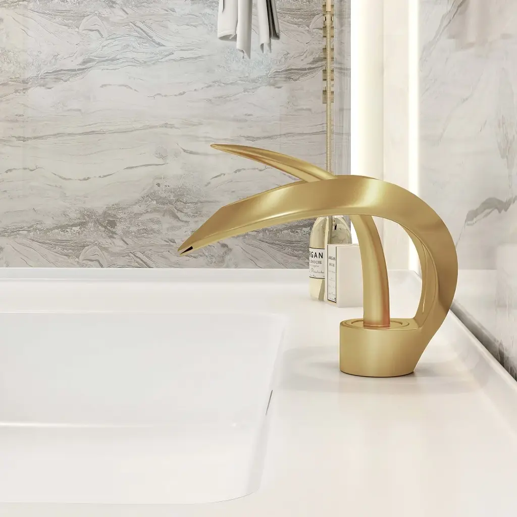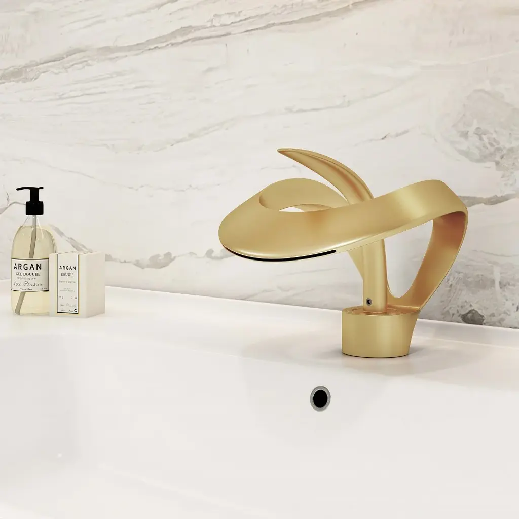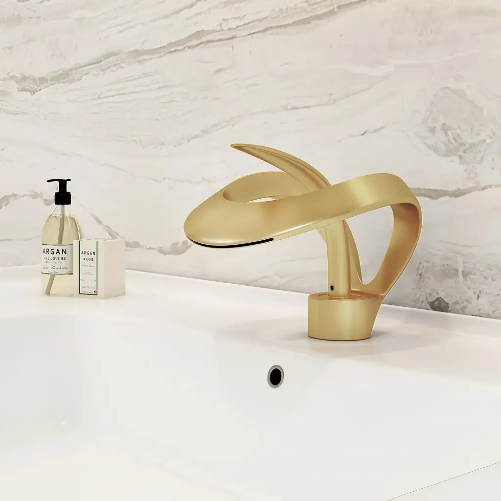 Waterfall Bathroom Sink Faucet In Gold Single Handle Solid Brass