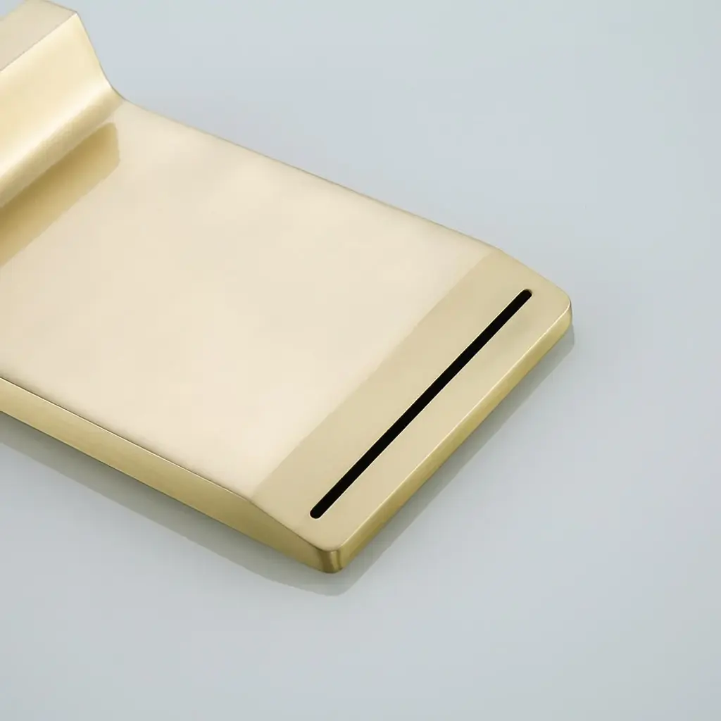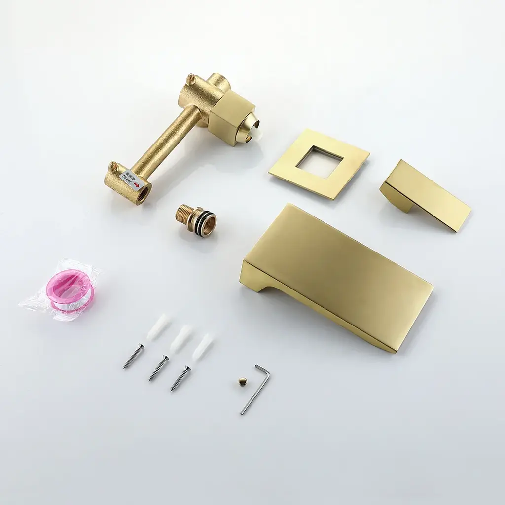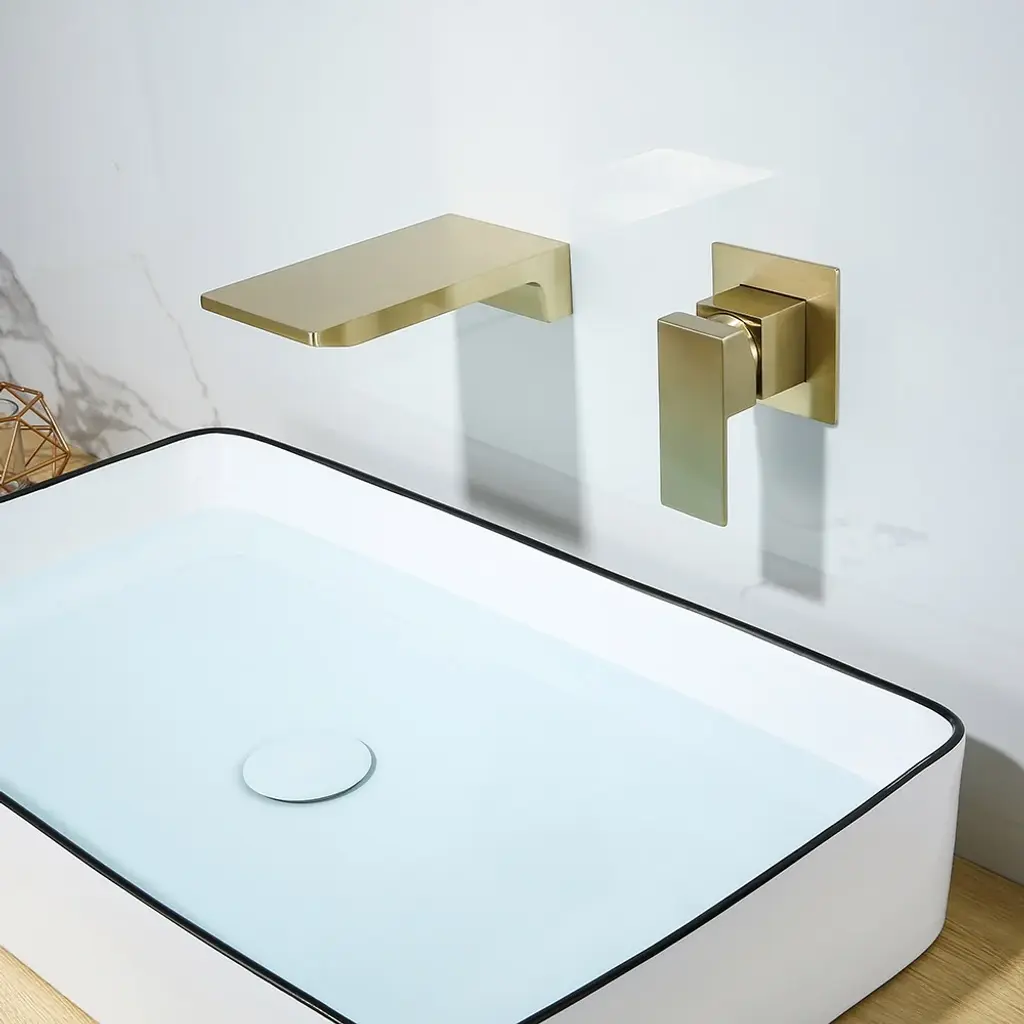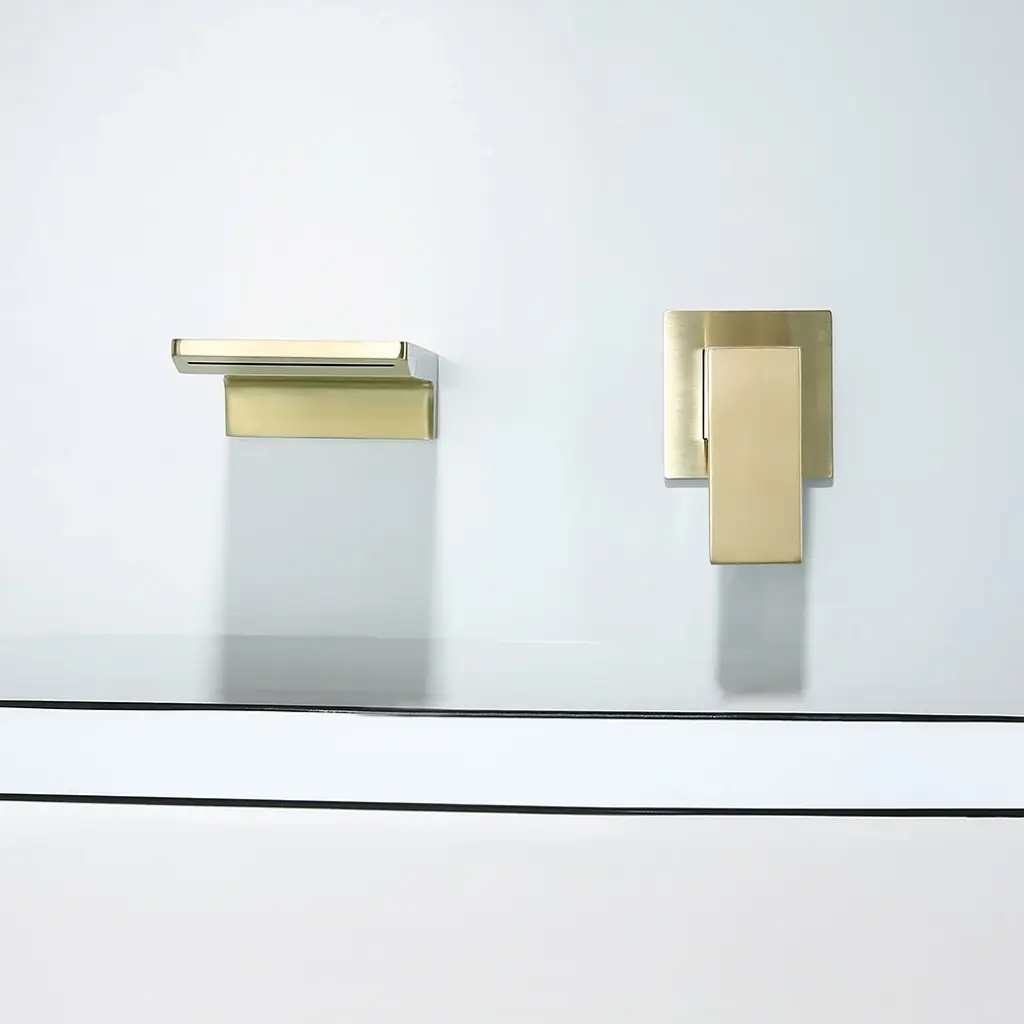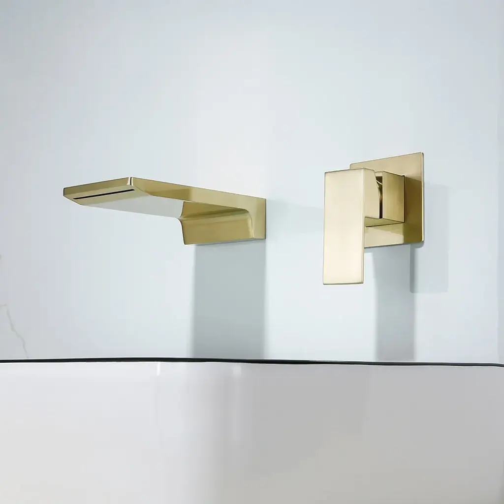 Waterfall Wall Mounted Brushed Gold Bathroom Sink Faucet Single Handle