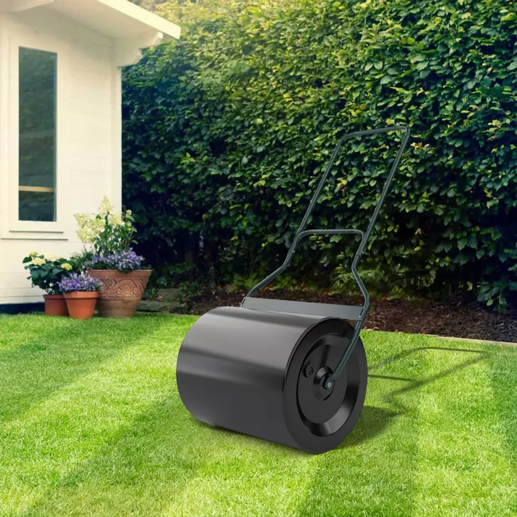 This lawn roller features a comfortable U-handle and a green, rust-resistant surface that is both attractive and durable. It includes a drain plug for easy filling with water or sand and has rolled rounded edges to protect your lawn during use. Lightweight and easy to transport when empty, this 16-gallon roller is ideal for flattening uneven ground and packing down new seed or sod.