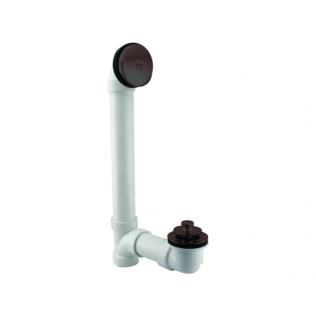 Complete your bathroom remodel with the Westbrass 1.5-Inch Pull Stopper Bath Drain Waste and Overflow Hardware Kit. This assembly kit includes everything you need to give your bathtub a makeover. The 1.5-inch PVC schedule 40 DWV tubes with slip-joint connections make installation and removal easy for cleaning and repairs. The pull operated drain stopper allows for effortless opening and closing, simply tap the cap down to close and pull the knob to release. With a dark, oil rubbed bronze finish, this kit adds a touch of modern style to your bathroom decor.Features:Additional Information: