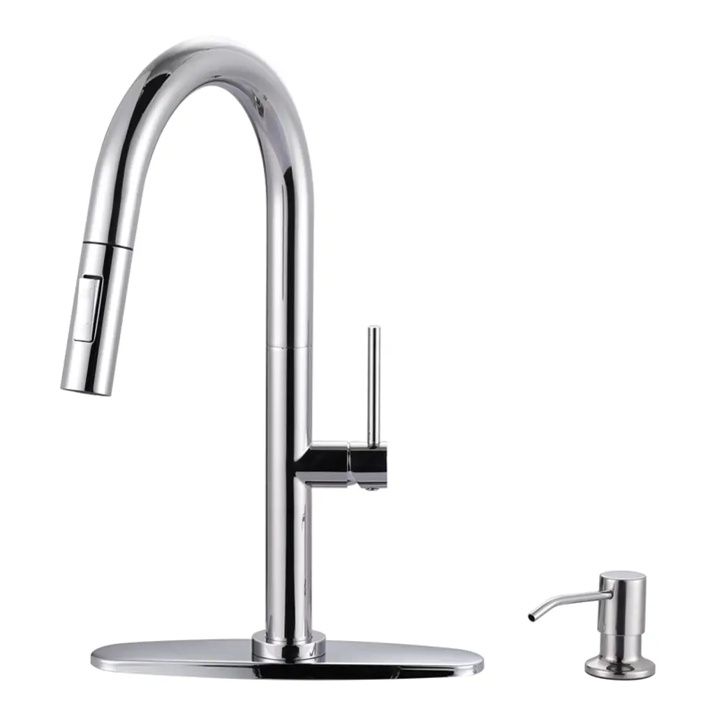 This pull-down sprayer faucet adds style and convenience to your water space with its sophisticated design and superior performance. The additional deckplate is aesthetically pleasing and covers excess mounting holes; 3-water dispensing modes, stream, spray and pause, meet various needs. Adopting high-quality ceramic valve core to ensure stable and smooth water flow, improve abrasion resistance and sealing, prevent dripping and leakage, and protect your family's water safety. The main body is made of high quality 304 stainless steel, which is not easy to rust and deform in long-term use, providing reliable quality assurance.