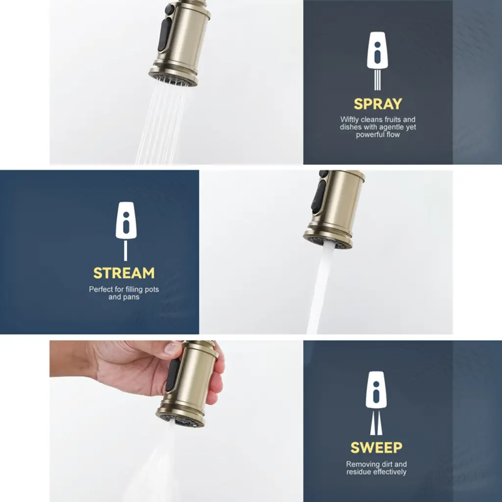 The flexible pull-down, water-saving and efficient, puts kitchen water at your fingertips. This faucet is uniquely designed with a pull-down that extends up to 18 in. for easy cleaning of all corners of the sink. Equipped with a 3-mode sprayer with an efficient flow rate of up to 1.8 GPM. Made of 304 stainless steel, it is abrasion and scratch-resistant, with a modern look to add color to your kitchen. Drip-free ceramic cartridges are rigorously tested with precise single-handle control. Hot and cold adjustable, easy to install, complete accessories. Enjoy high-quality after-sales service and fast problem solving.
