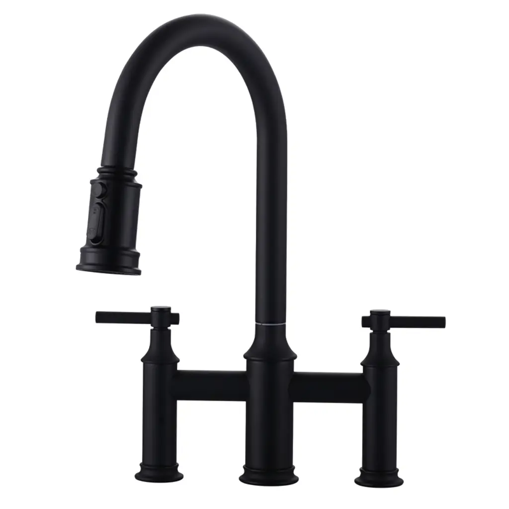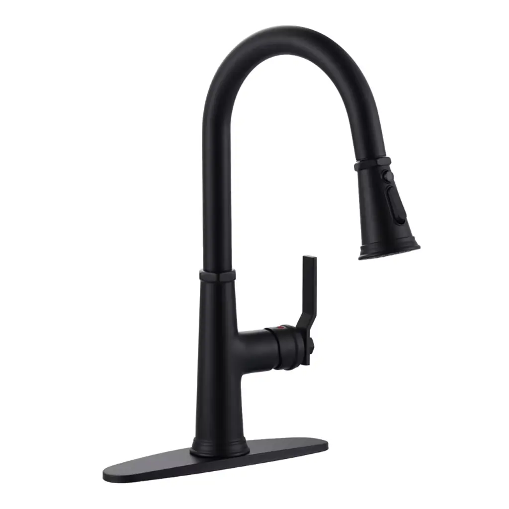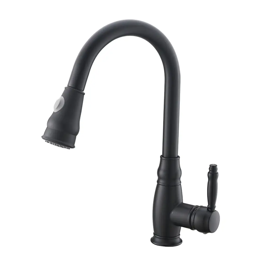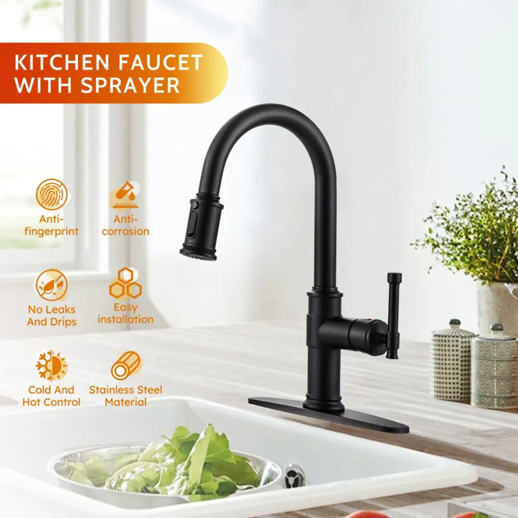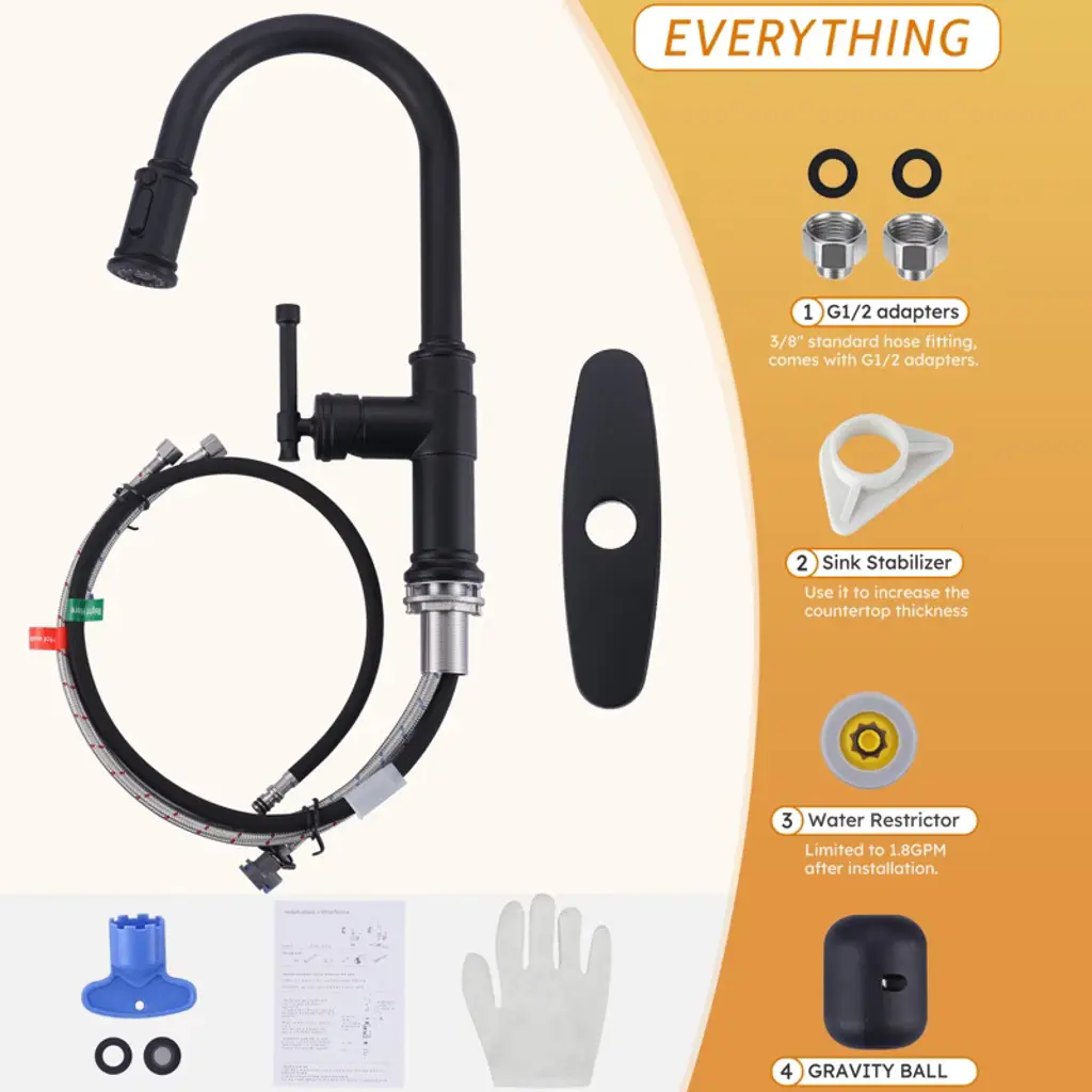 Wowow 16.2 In. Single Handle Pull Down Sprayer Kitchen Faucet With 360° Spout Swivel In Matte Black
