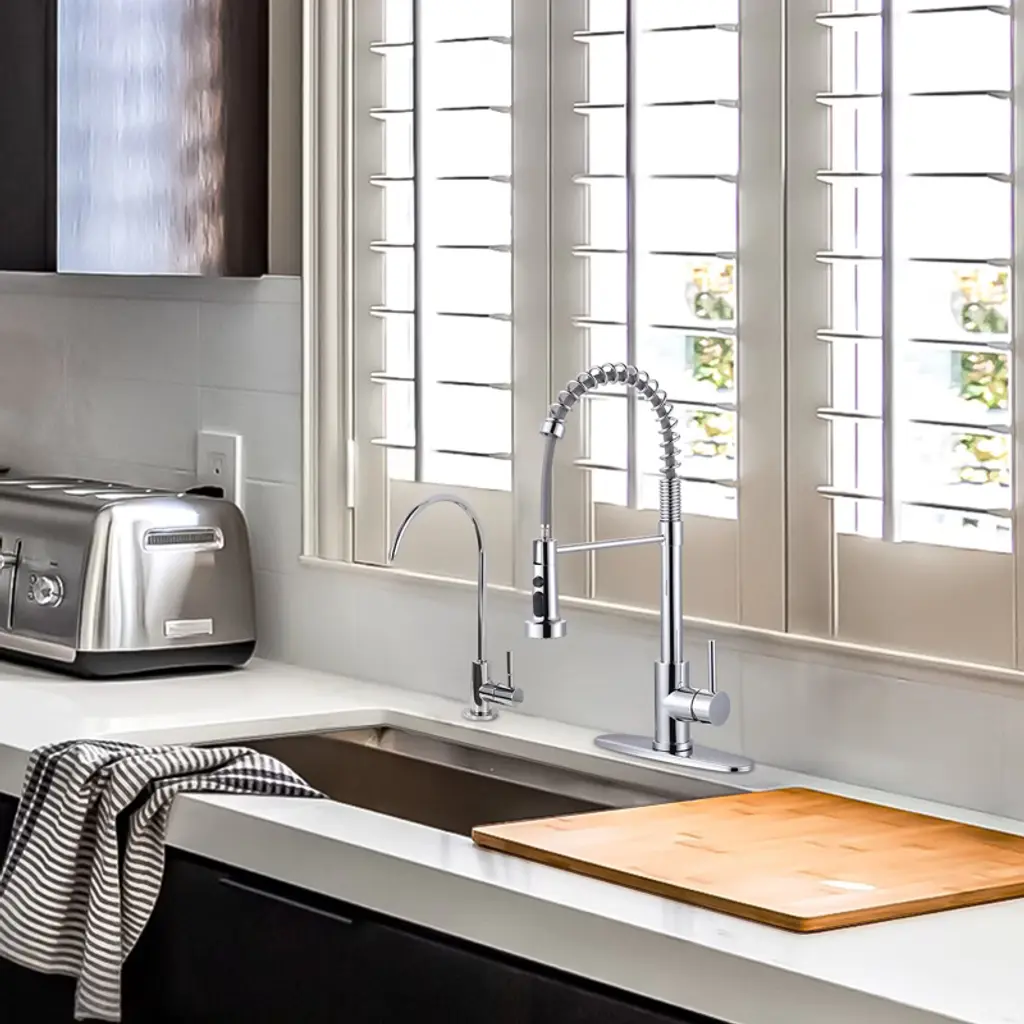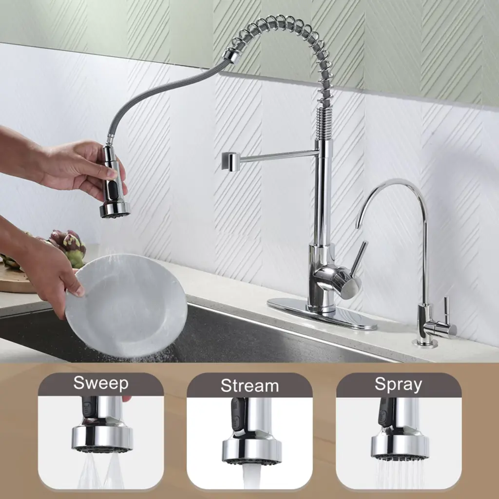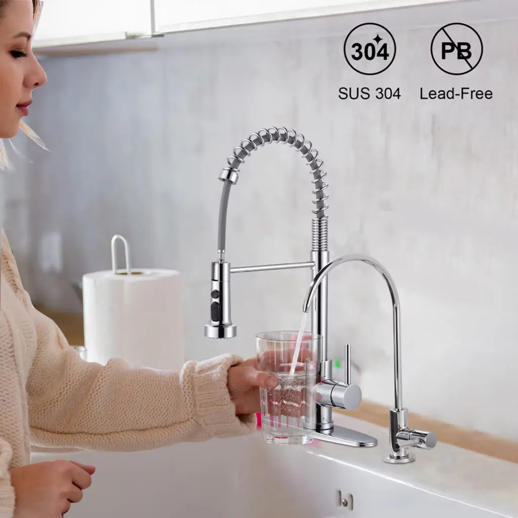 Wowow 2-in-1 Kitchen Faucet Set, Sus 304 Stainless Steel Pull Down Faucet With Drinking Water Faucet In Chrome