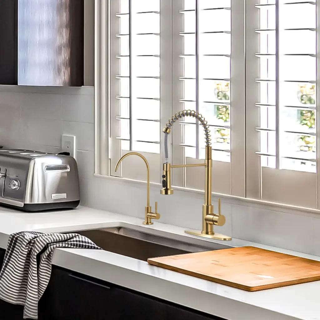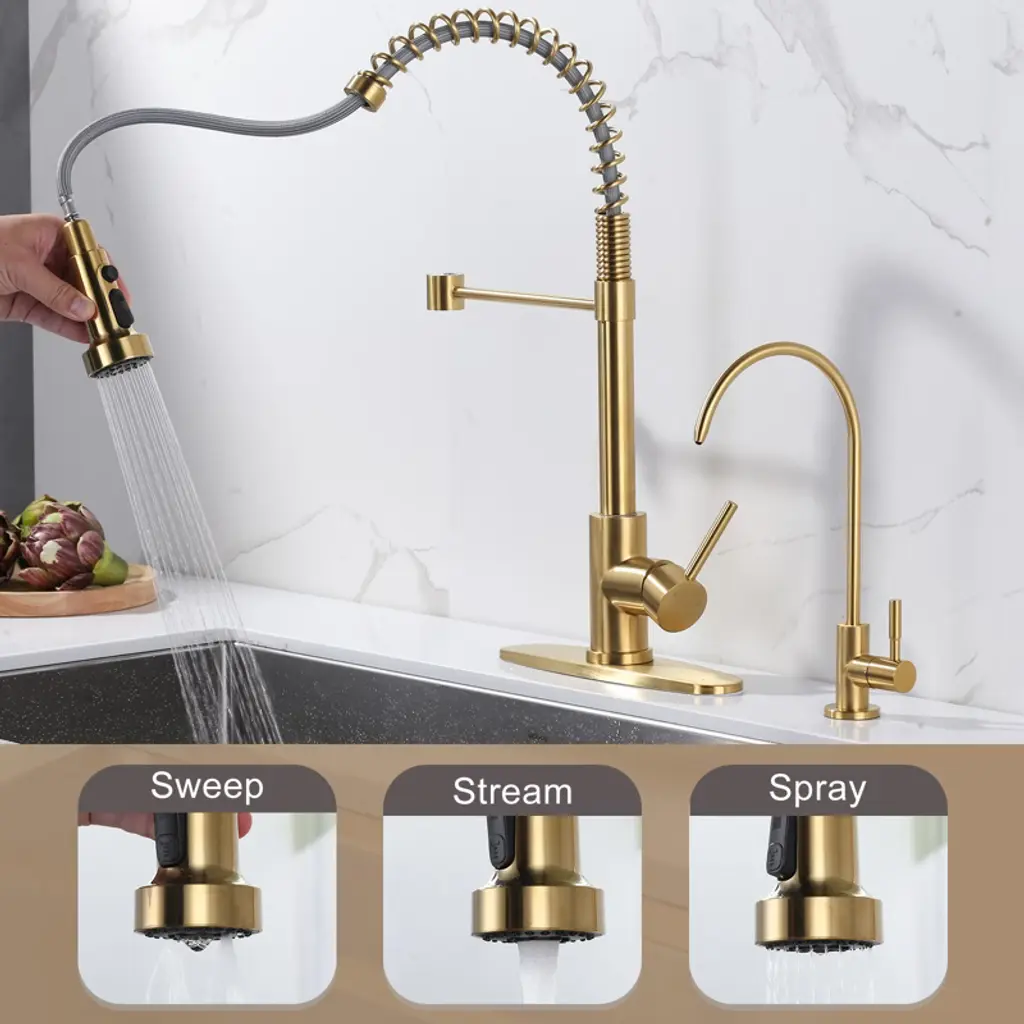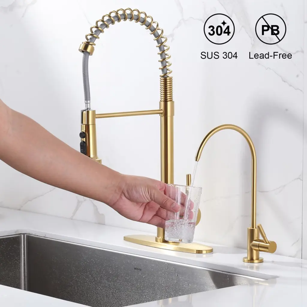 Wowow 2-in-1 Kitchen Faucet Set, Sus 304 Stainless Steel Pull Down Faucet With Drinking Water Faucet In Gold