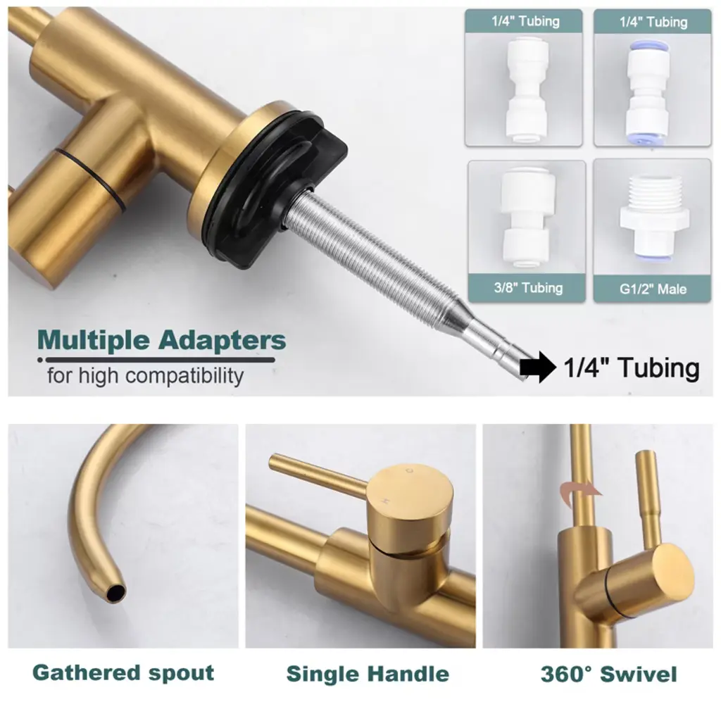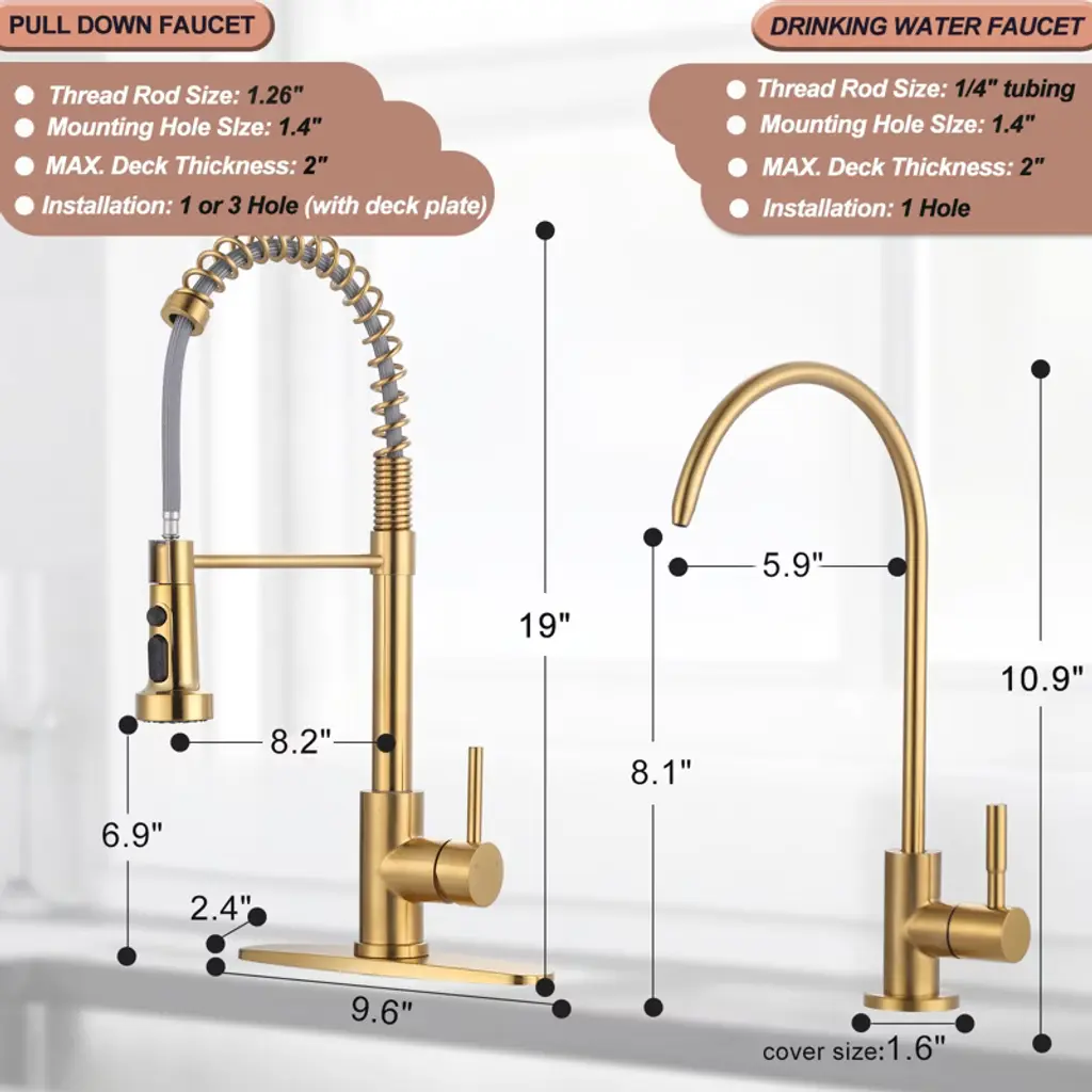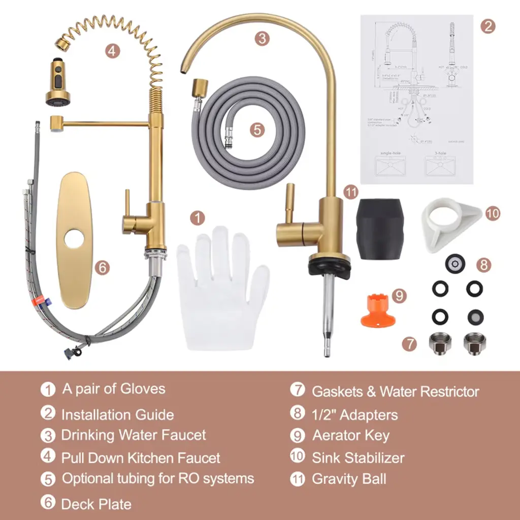 Wowow 2-in-1 Kitchen Faucet Set, Sus 304 Stainless Steel Pull Down Faucet With Drinking Water Faucet In Gold