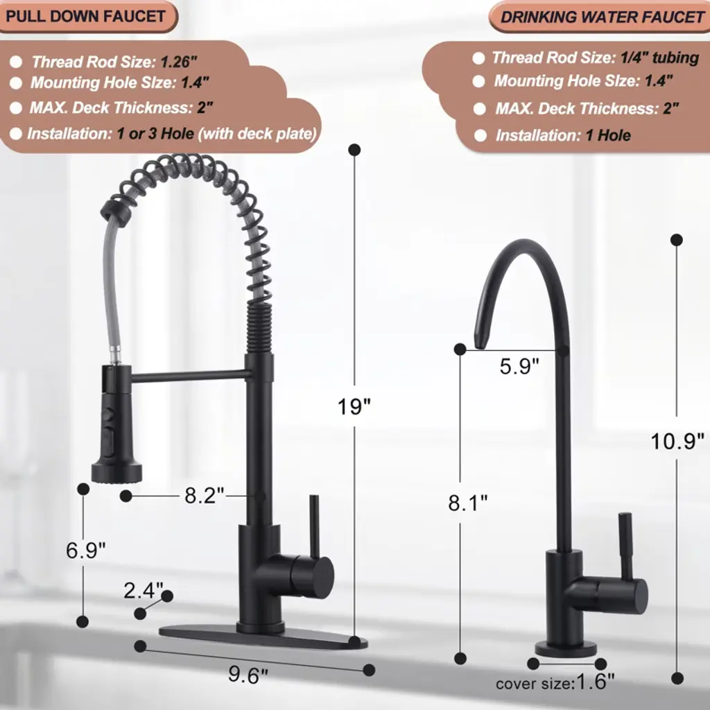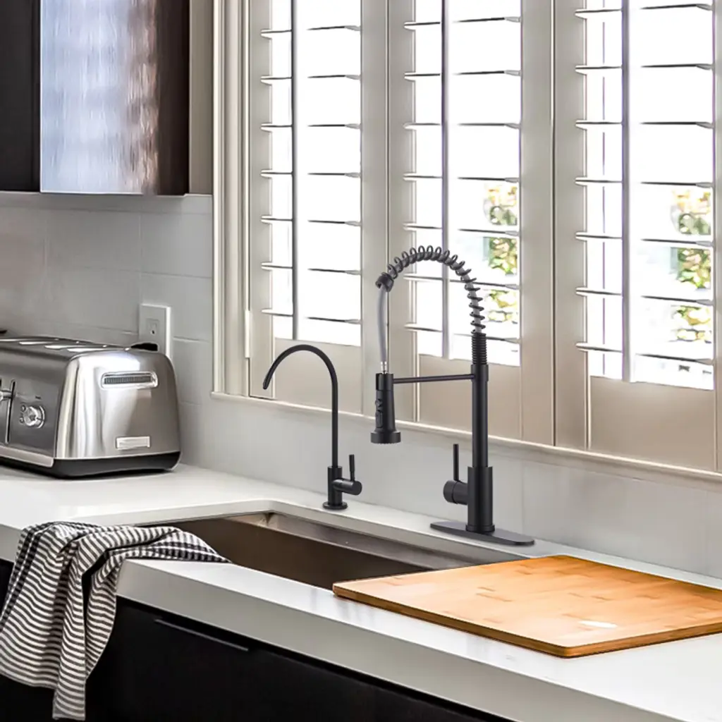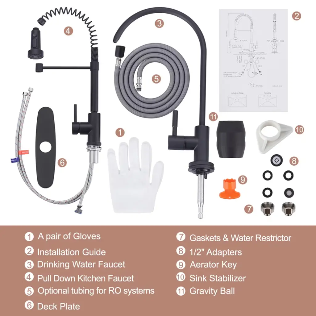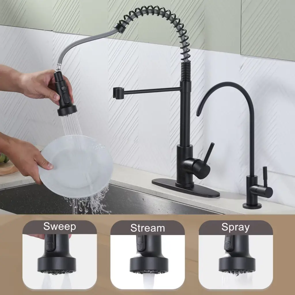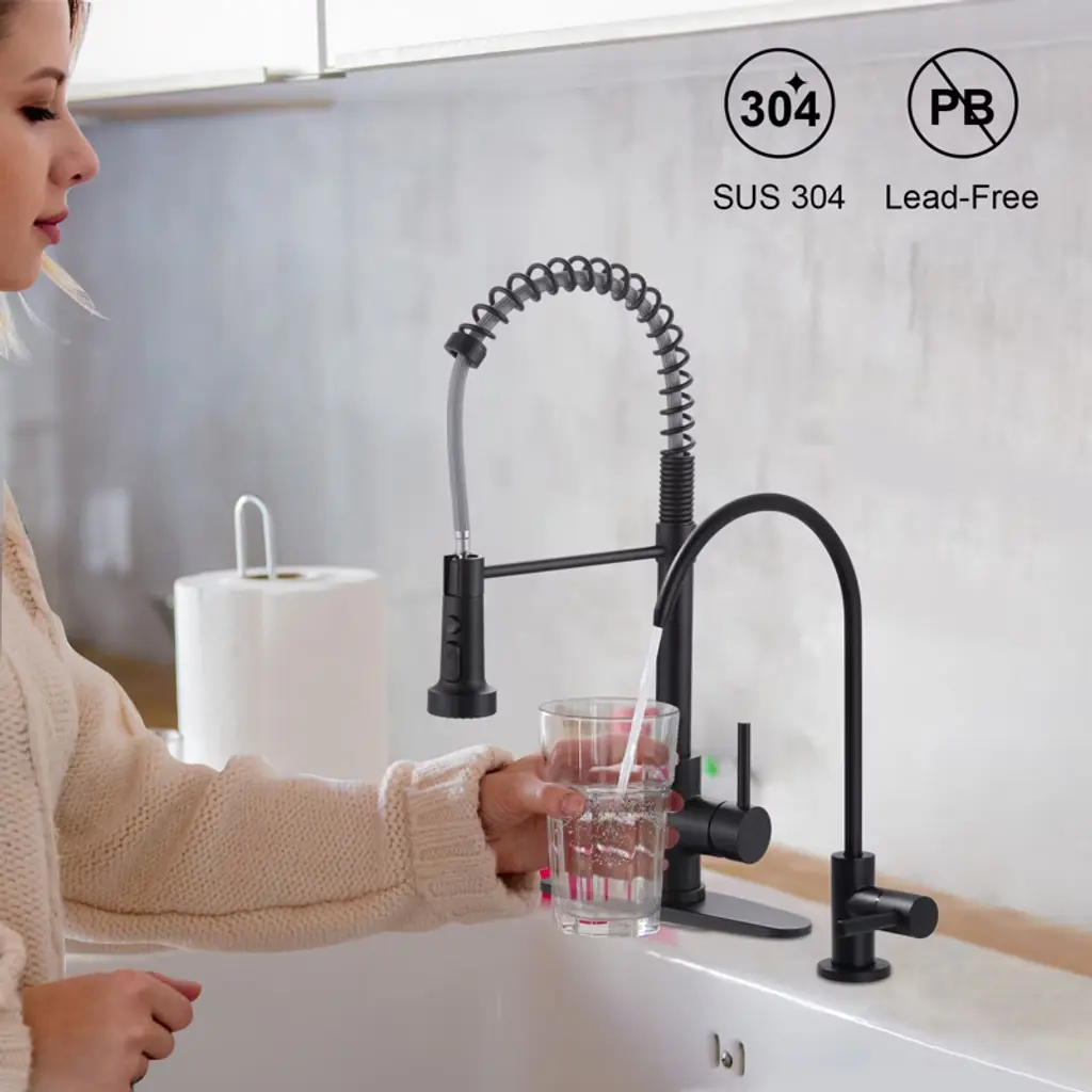 Wowow 2-in-1 Kitchen Faucet Set, Sus 304 Stainless Steel Pull Down Faucet With Drinking Water Faucet In Matte Black