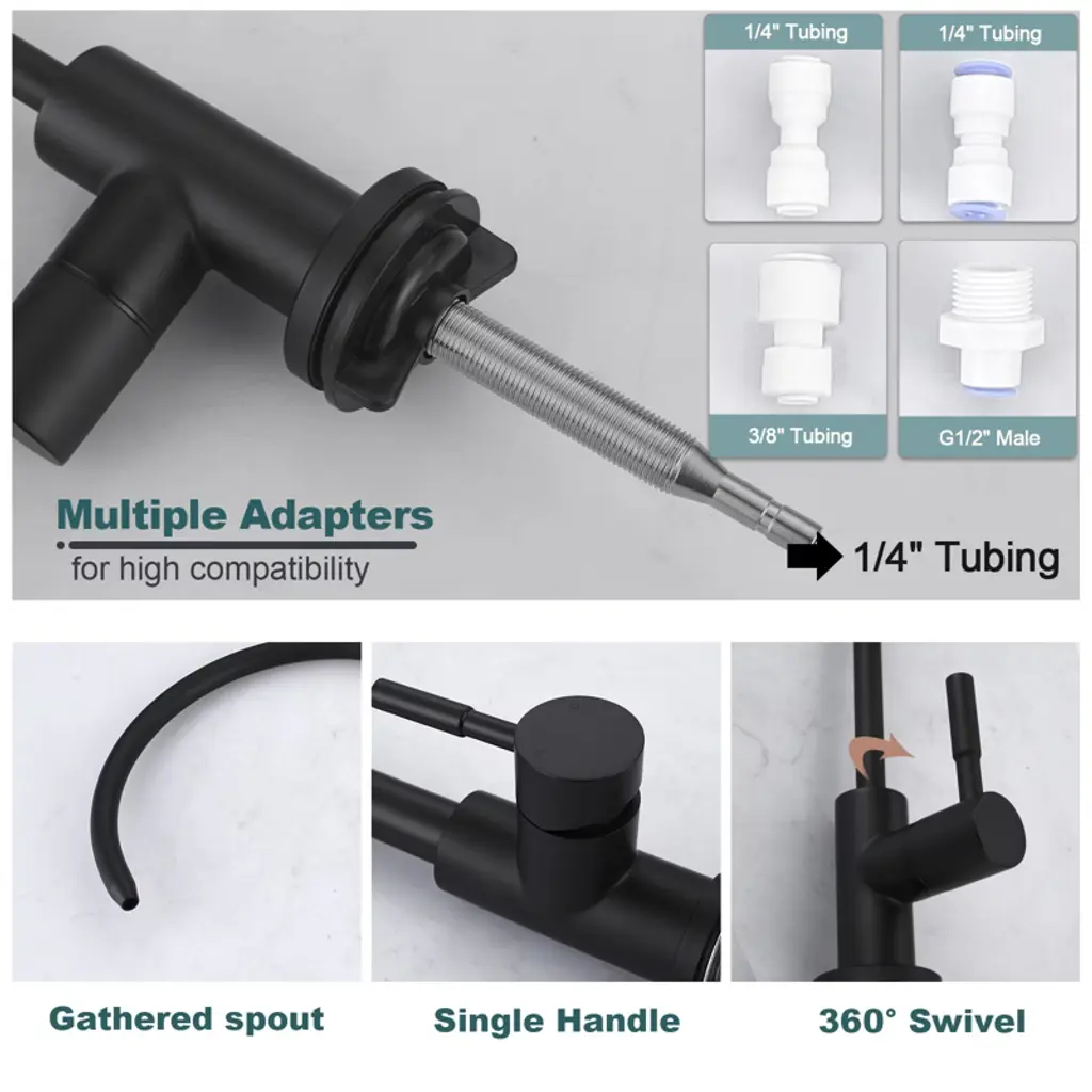 WOWOW delivers the ultimate kitchen upgrade with this dual-function faucet combo. Crafted from SUS 304 stainless steel, the pull-down kitchen faucet features 3 spray modes — Sweep, Stream, and Spray — to handle everything from rinsing produce to blasting away stuck-on messes. The dedicated drinking water faucet connects to RO systems and ensures clean, lead-free water at your fingertips. Comes with multiple adapters for easy DIY installation on both 1-hole and 3-hole sinks.